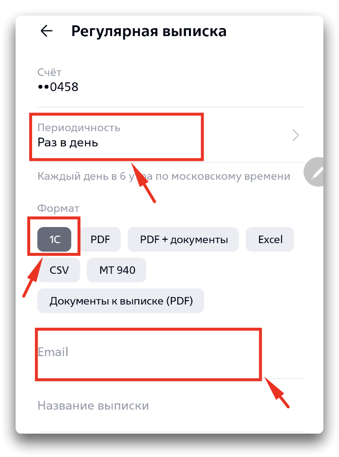 - Скачивание выписки в формате 1С