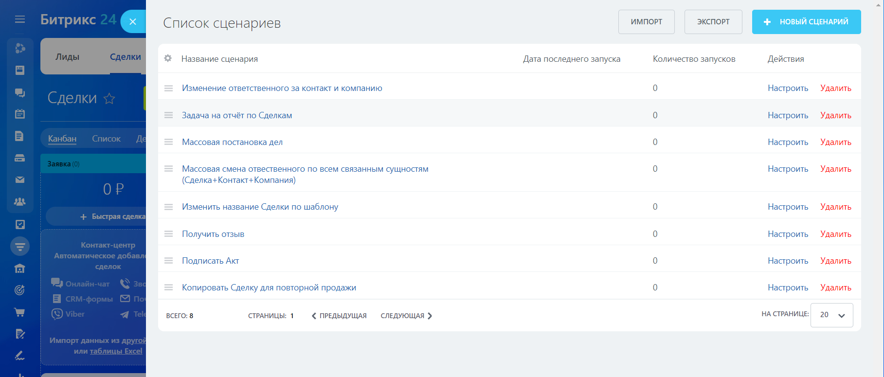 Сценарии позволяют оперативно отработать большое кол-во Сделок