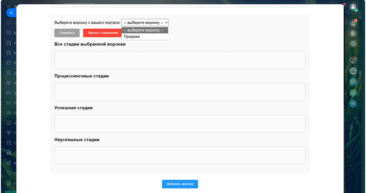 Убедитесь, что в разделе "Успешные стадии" выбраны нужные вам стадии сделок