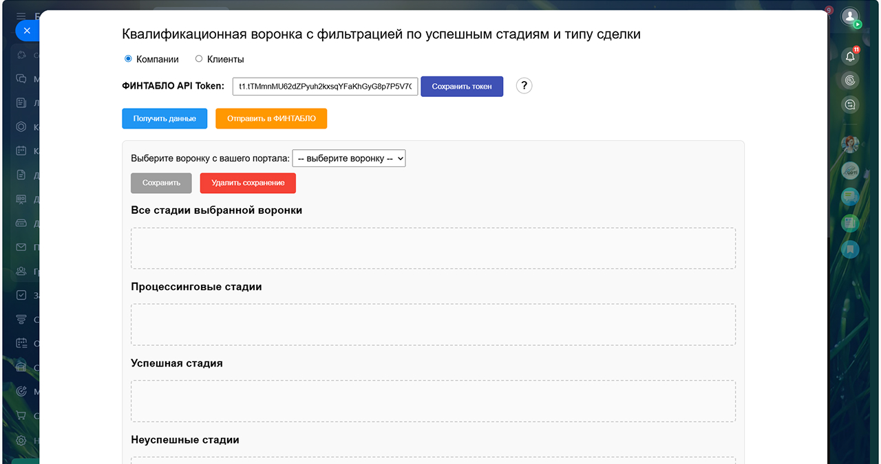 * Простота Внедрения: Решение легко настраивается под ваши поля в Битрикс24 и структуру в Финтабло. Не требует глубоких технических знаний для использования.