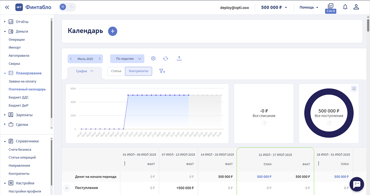 4. Контроль: Видите все ожидаемые поступления от сделок в вашем Платежном Календаре Финтабло, вместе с другими операциями.
