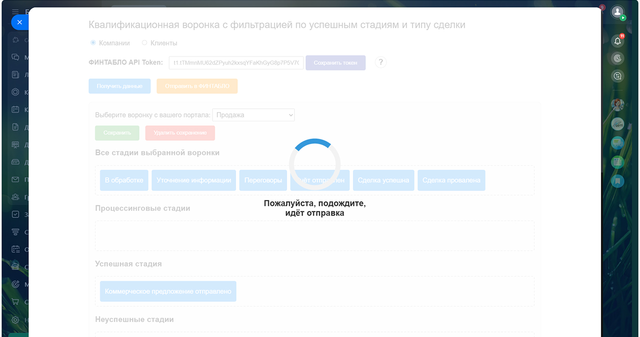 Нажмите кнопку "Отправить в ФИНТАБЛО" для передачи данных