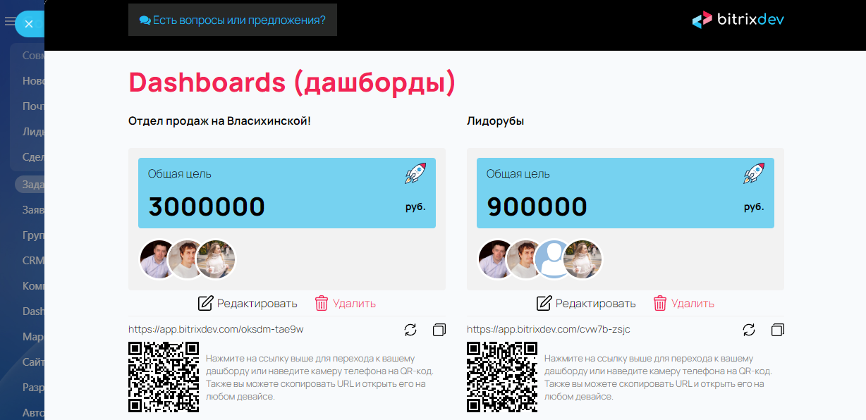 Вы можете настроить сразу несколько дашбордов для разных отделов!