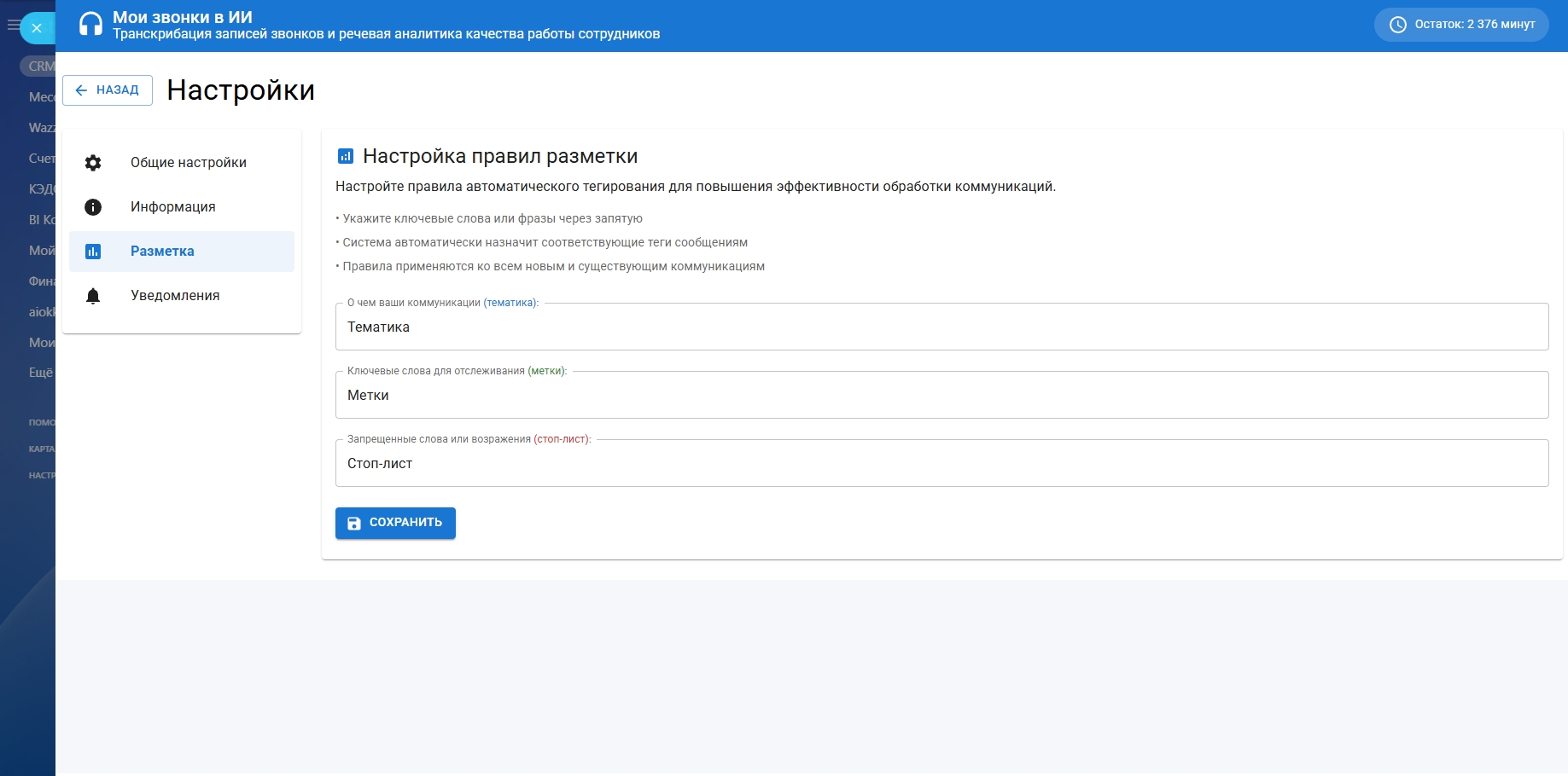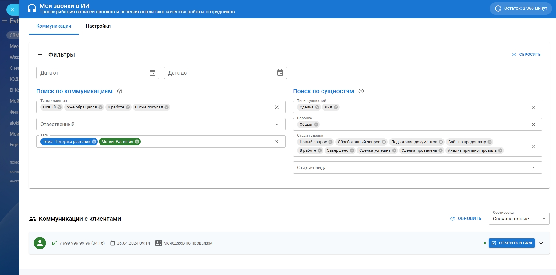 Мои звонки в ИИ (транскрибация записей звонков и речевая аналитика качества работы сотрудников)