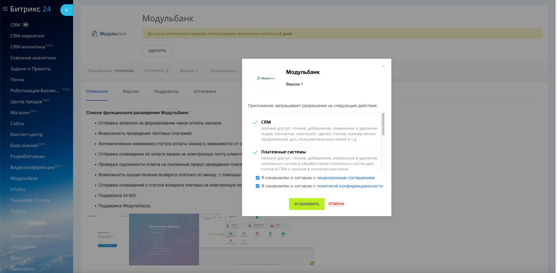 Инструкция по интеграции «Битрикс24» и «МодульБанк»