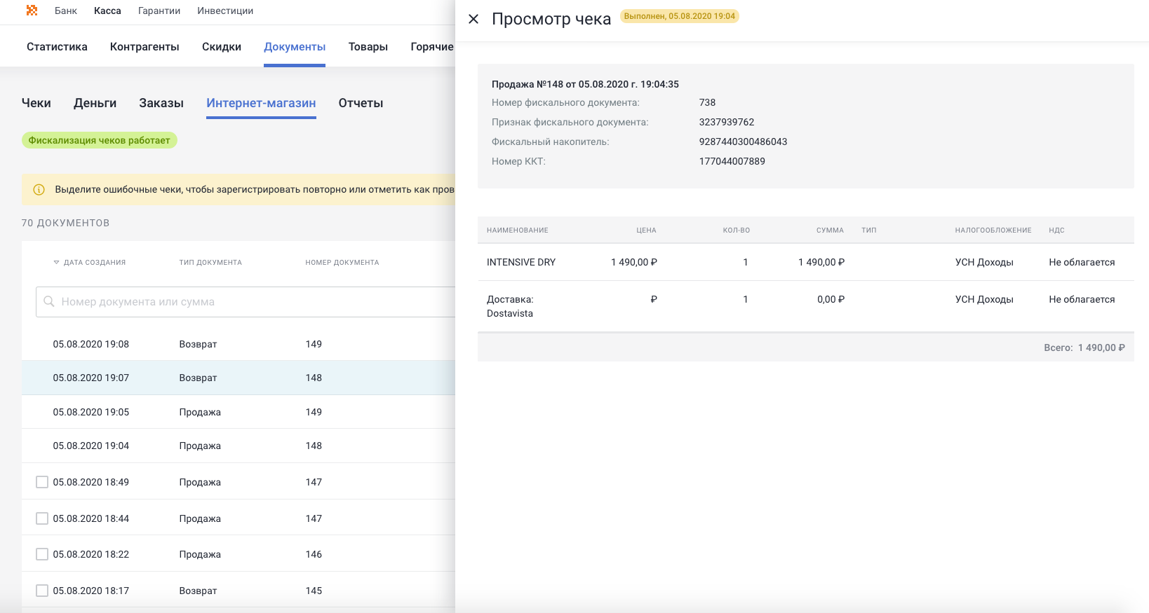 Разработчики реализовали то, о чем я мечтал - чтобы не нужно было иметь две кассы, одну для онлайн продаж, другую для оффлайн. Теперь стоит одна касса чих-пыхает на столе, в это время обрабатывая как платежи, которые принимают мои курьеры на доставки так и те, что поступают от клиентов через сайт и платежные ссылки. Сбоев в приложении за год использования замечено не было.