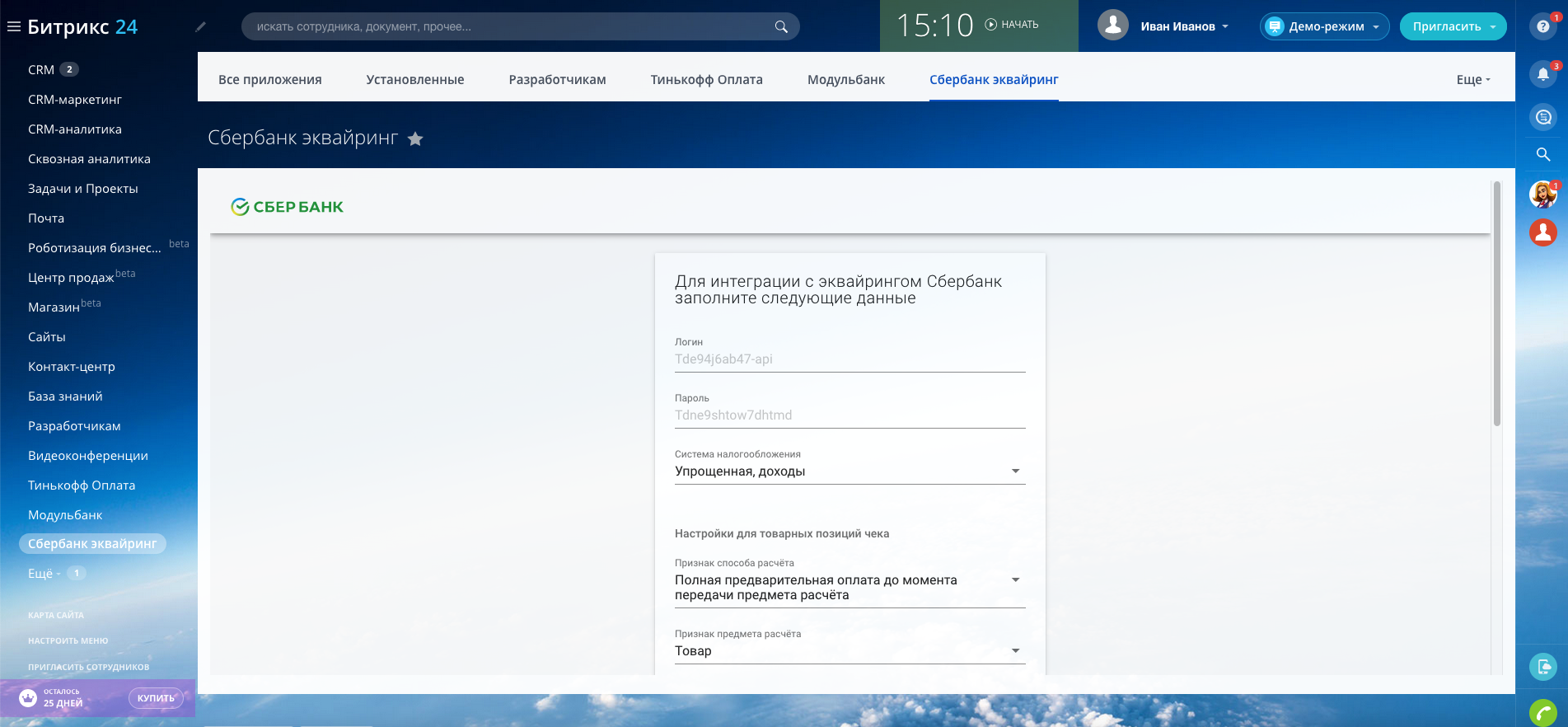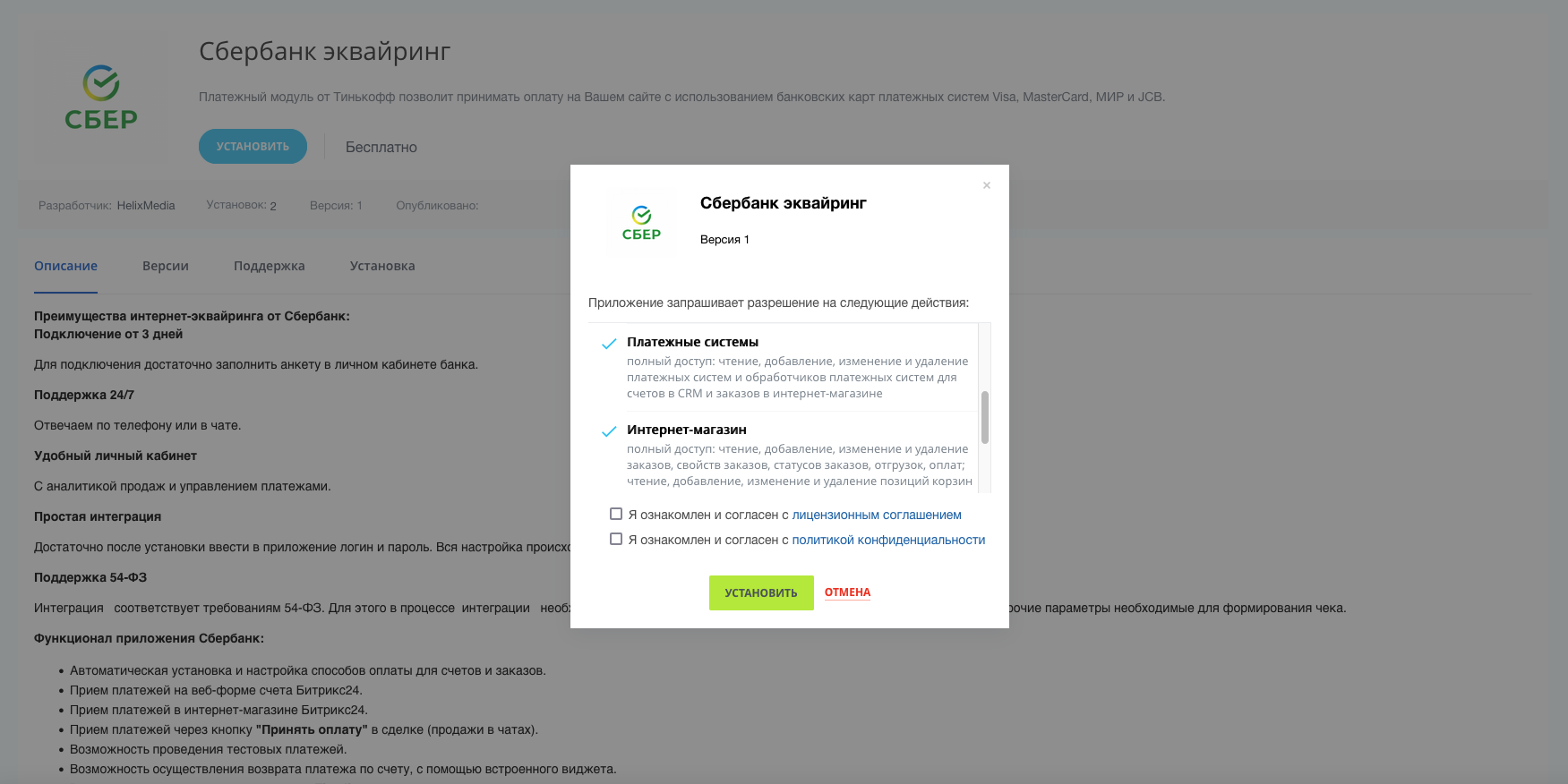 Инструкция по интеграции «Битрикс24» и «Сбербанк (интернет-эквайринг)»