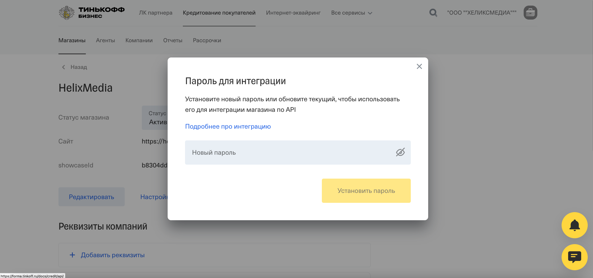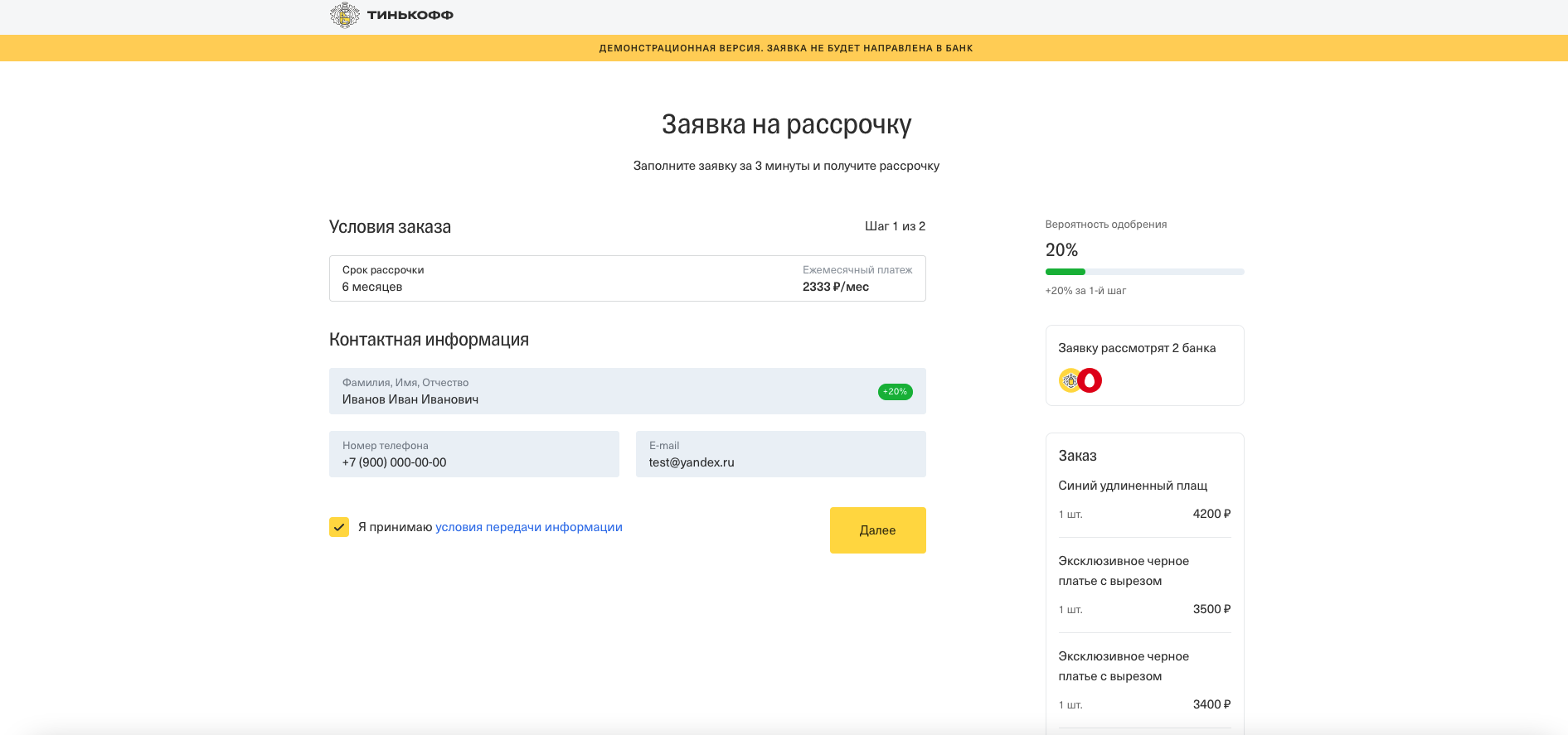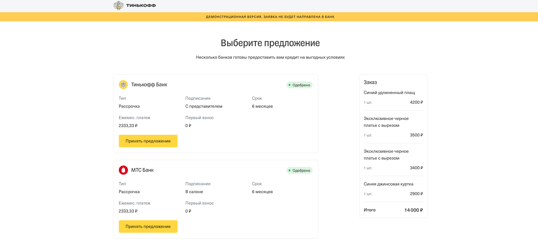 Полнофункциональный платежный модуль POS-кредитования от Тинькофф банк.