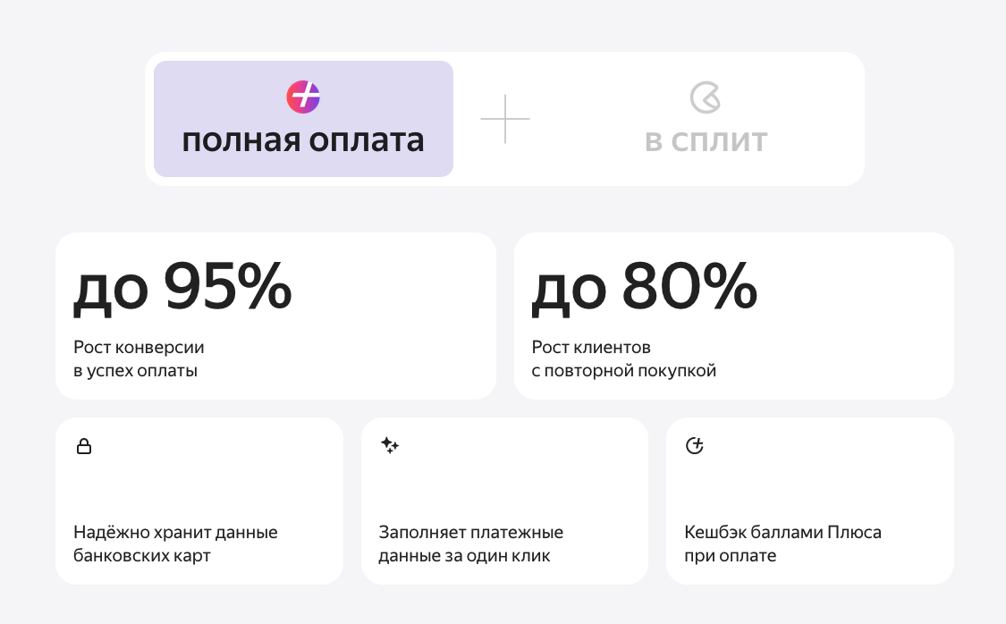 Яндекс Пэй — информационный сервис, который позволяет оплачивать товары и услуги сразу, с кешбэком баллами Плюса или частями, с помощью Яндекс Сплит.
