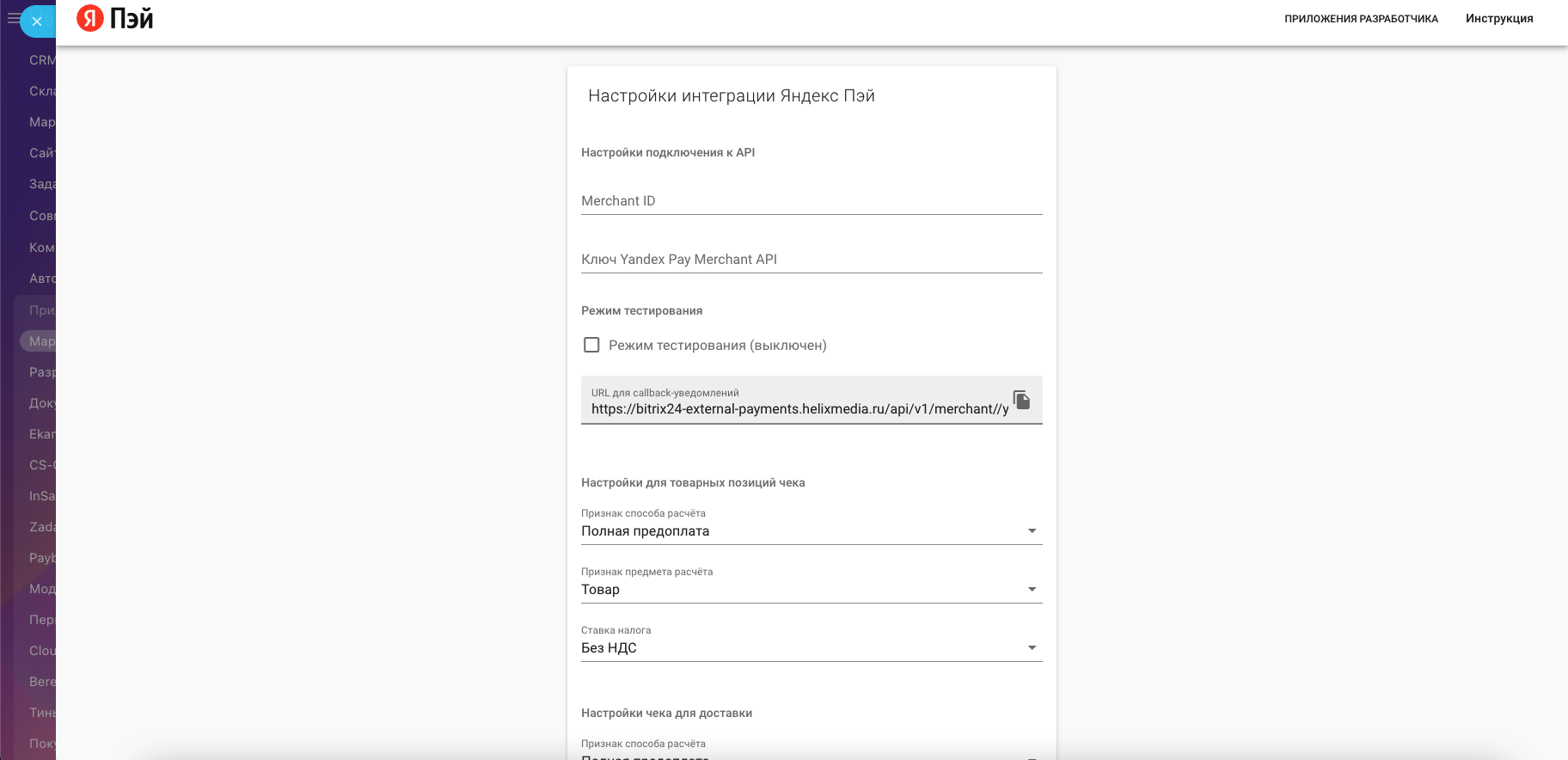 Функционал приложения для работы с эквайрингом Яндекс Пэй + Сплит: