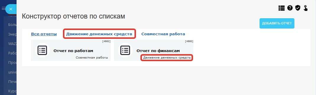 Отчеты по универсальным спискам