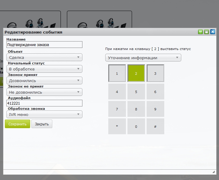 Меняйте статус сделки в зависимости от выбора команды в IVR-меню.