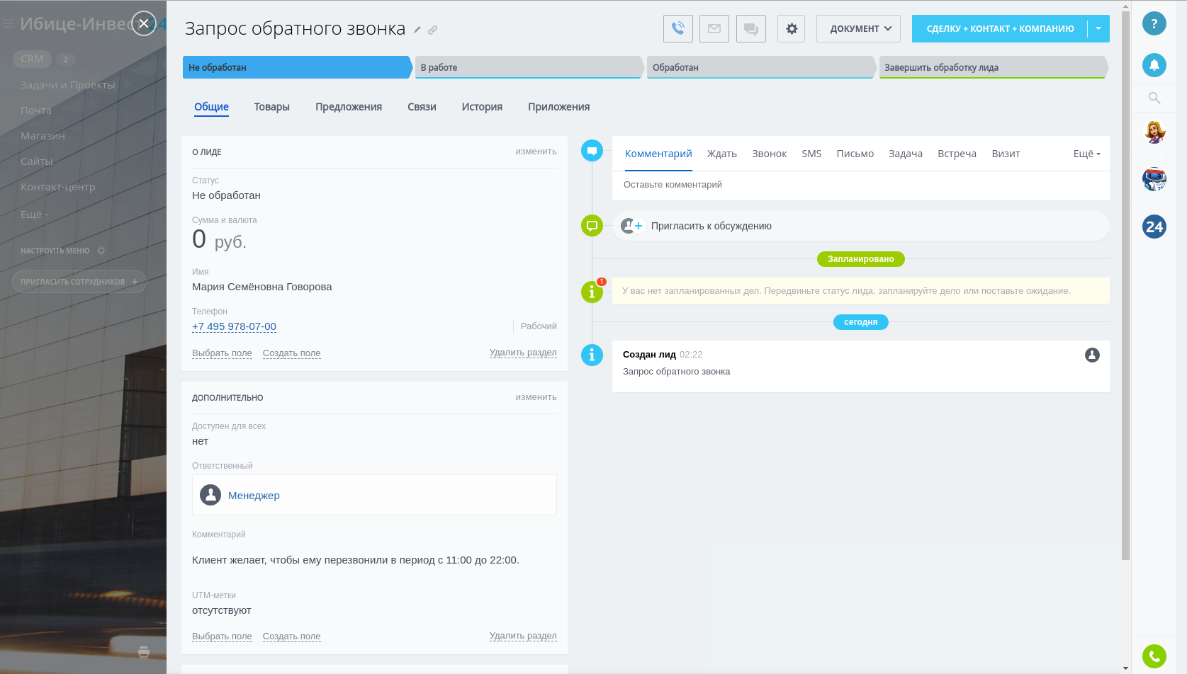 - Передача списка товаров из заказа в CS-Cart в специальный раздел сделки либо в виде текстового комментария.