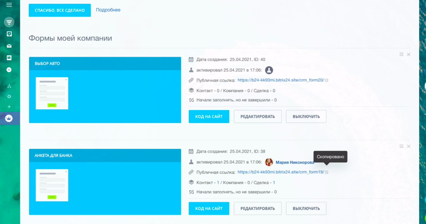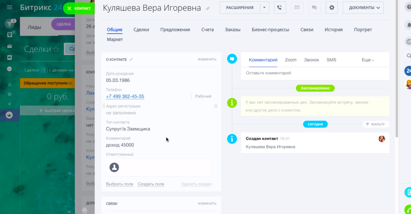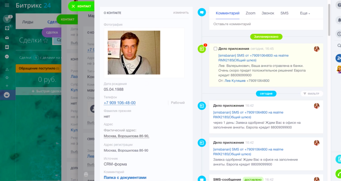 - Автоматическое добавление заемщика и контактных лиц через crm форму