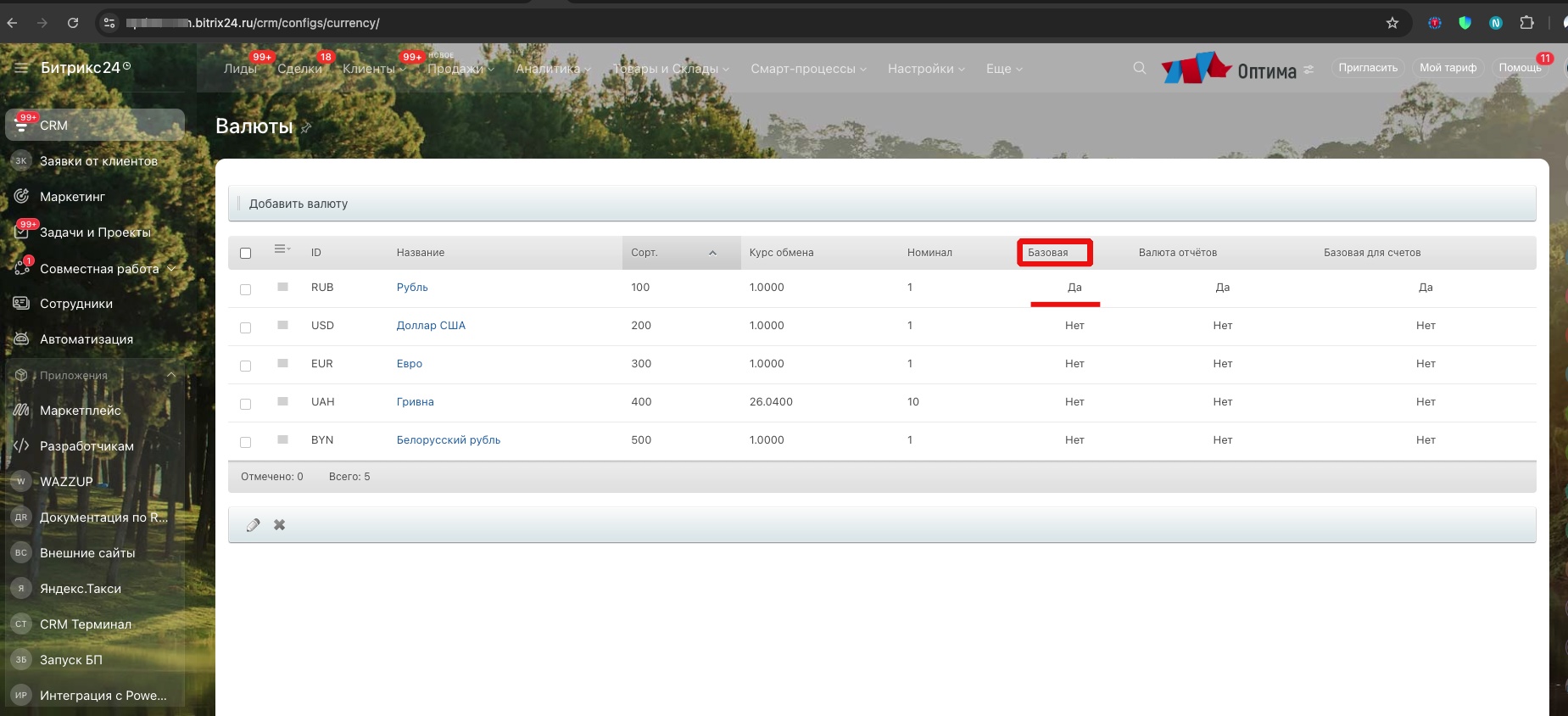 25.06.2025 Добавлена привязка в базовой валюте, которая установлена в настройках CRM