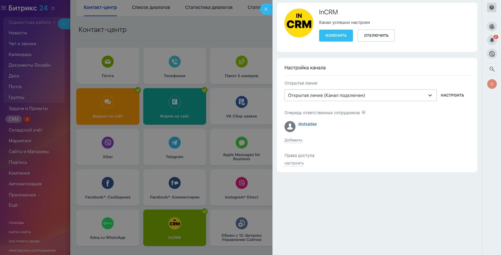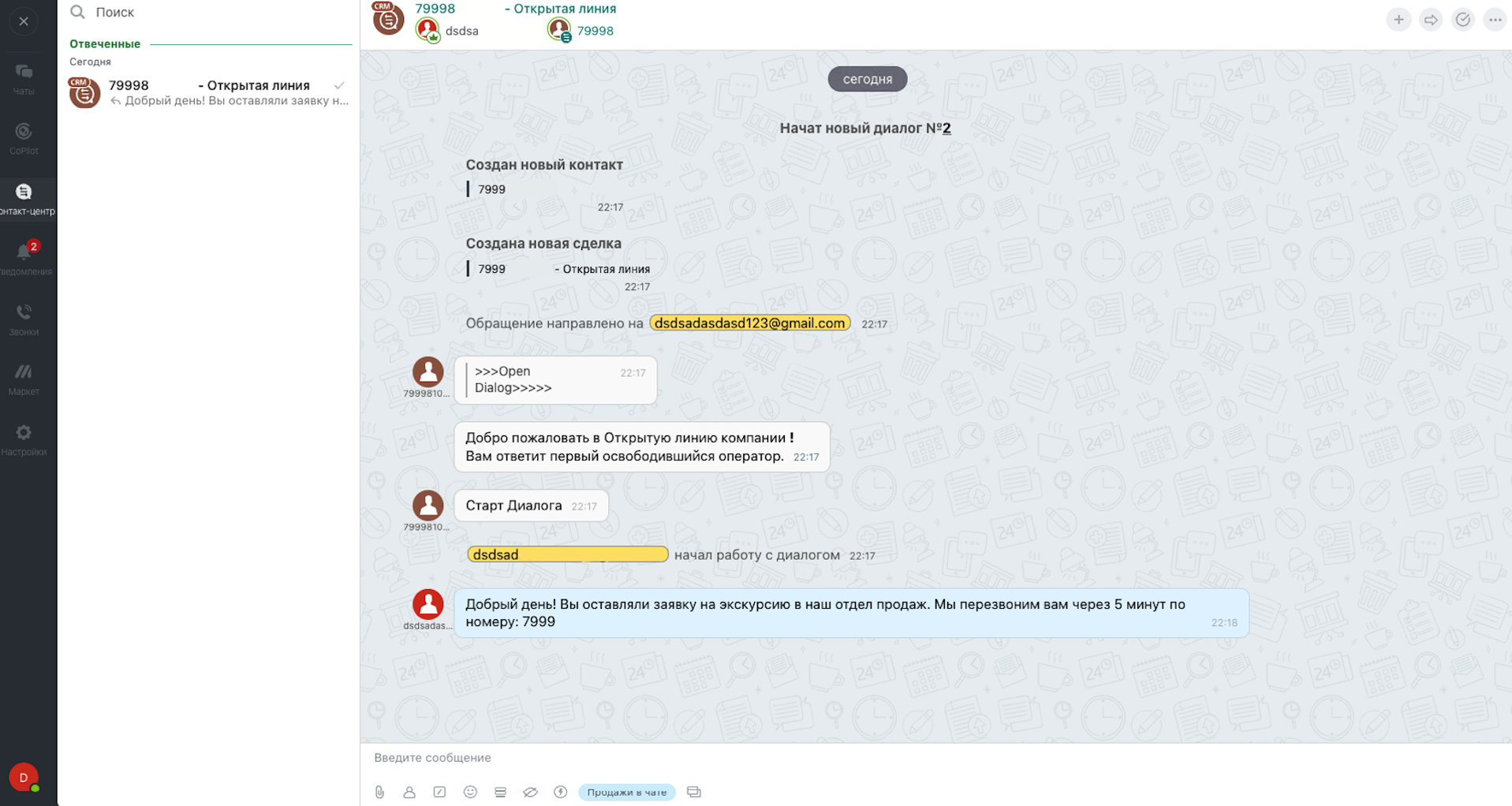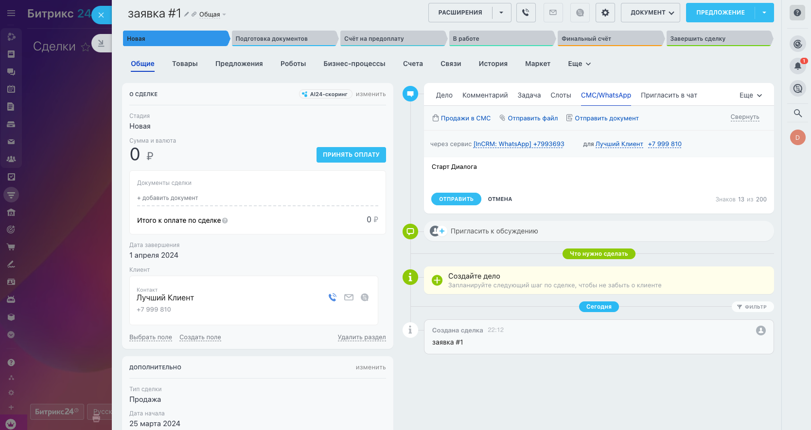 Пишите первым из карточки сделки и отвечайте на входящие из Открытых Линий.