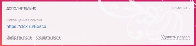 После установки приложения в разделе «Дополнительно» карточки сущности появится поле «Сокращенная ссылка».