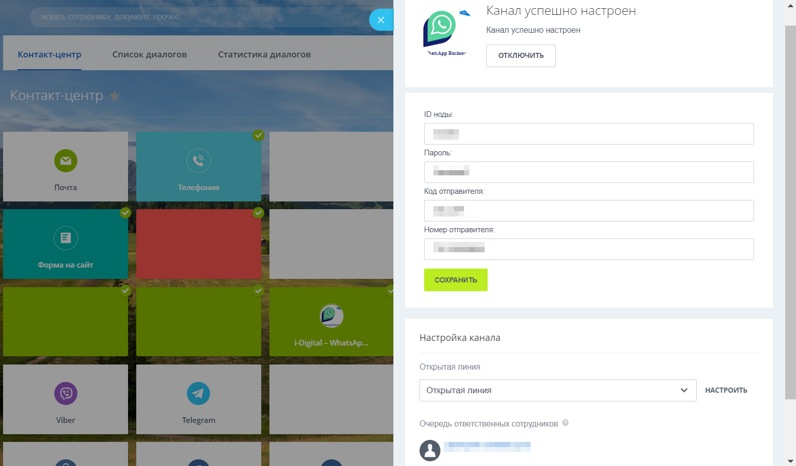 Приложение позволяет общаться с клиентами в мессенджере WhatsApp и обрабатывать входящие сообщения через канал открытых линий.