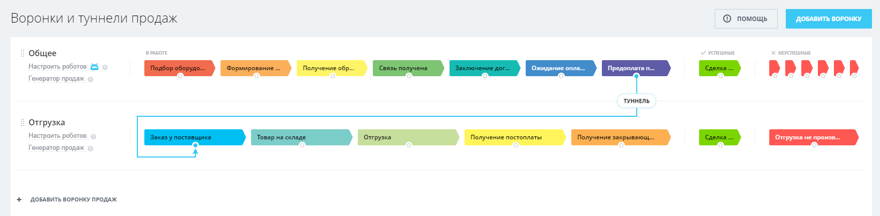 - Настроенные воронки Лидов и Сделок;