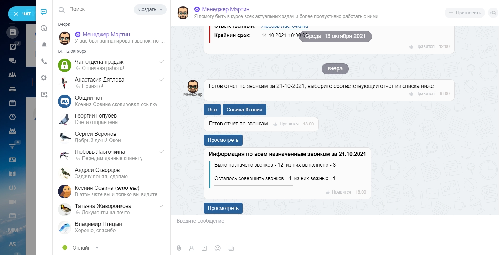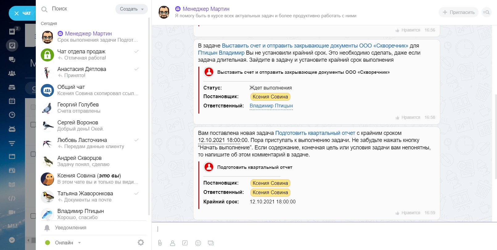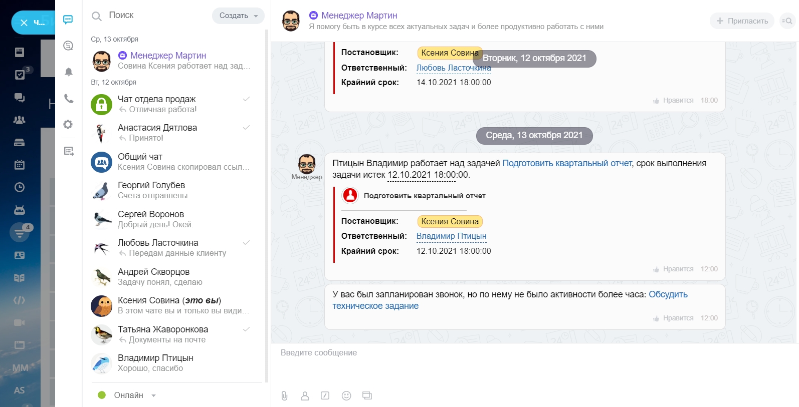 Мартин помогает быть в курсе всех актуальных задач и работать с ними более продуктивно.