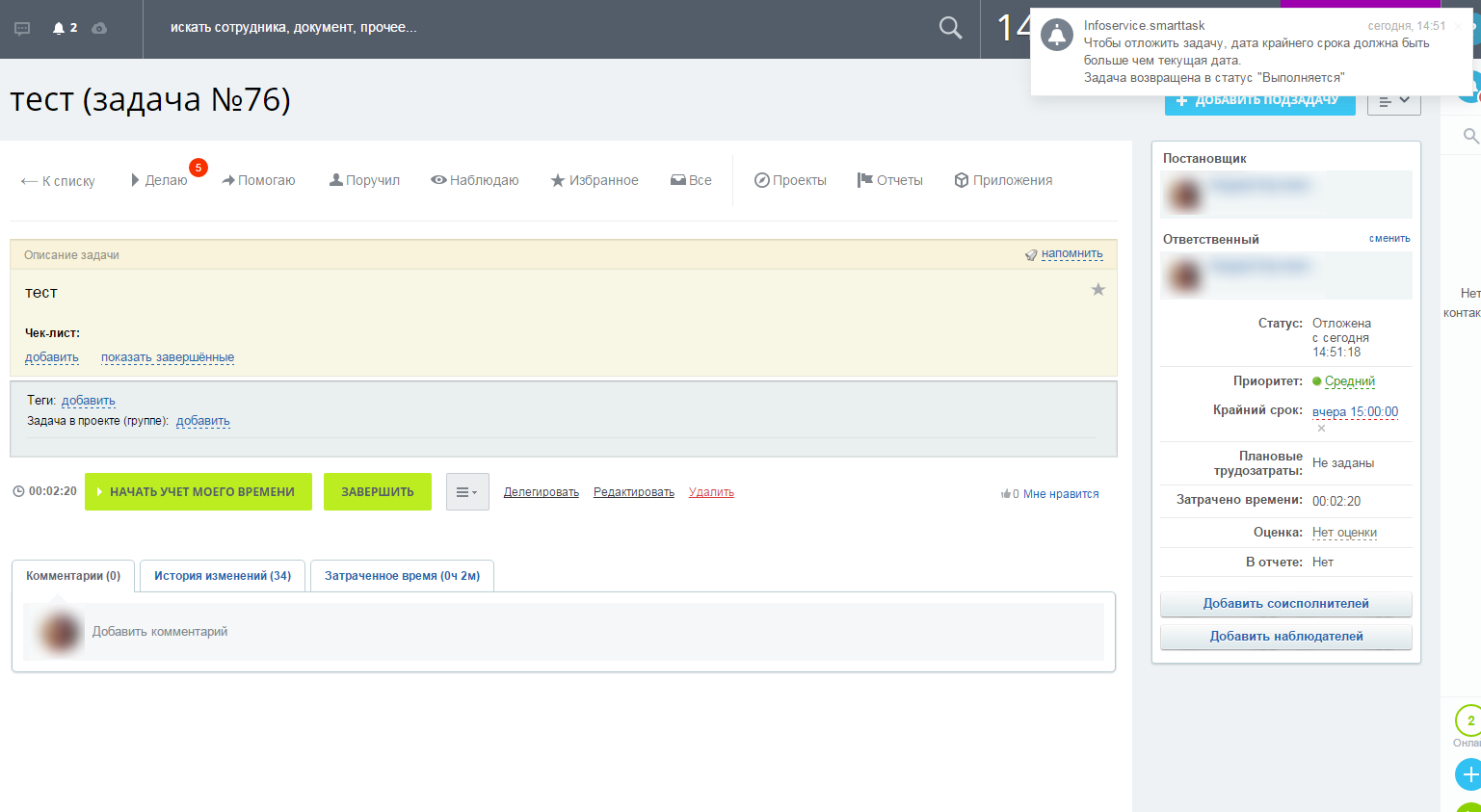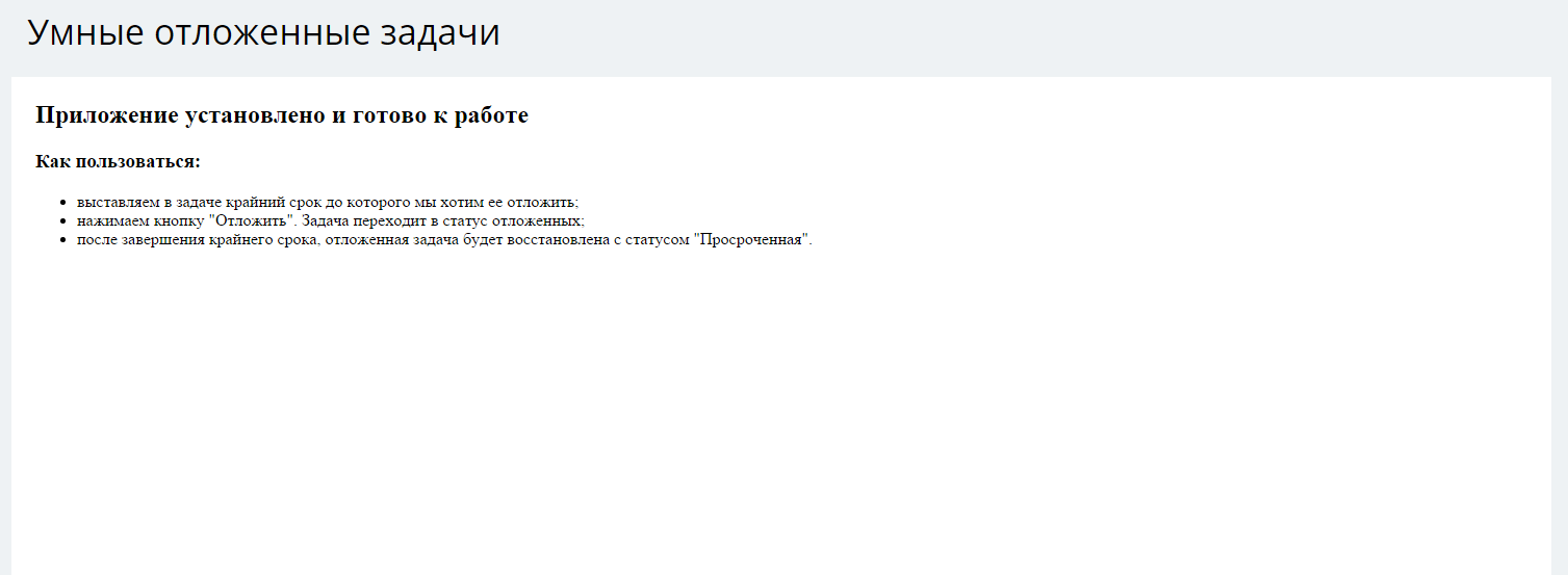 - После завершения крайнего срока, отложенная задача будет восстановлена с статусом «Просроченная».
