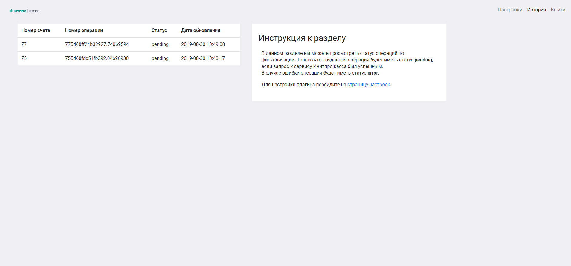 Приложение Инитпро|касса реагирует на изменение статуса оплаты счета и отправляет данные об оплате на сервис Инитпро|касса для фискализации на подключенном оборудовании. После фискализации электронный чек будет отправлен покупателю.