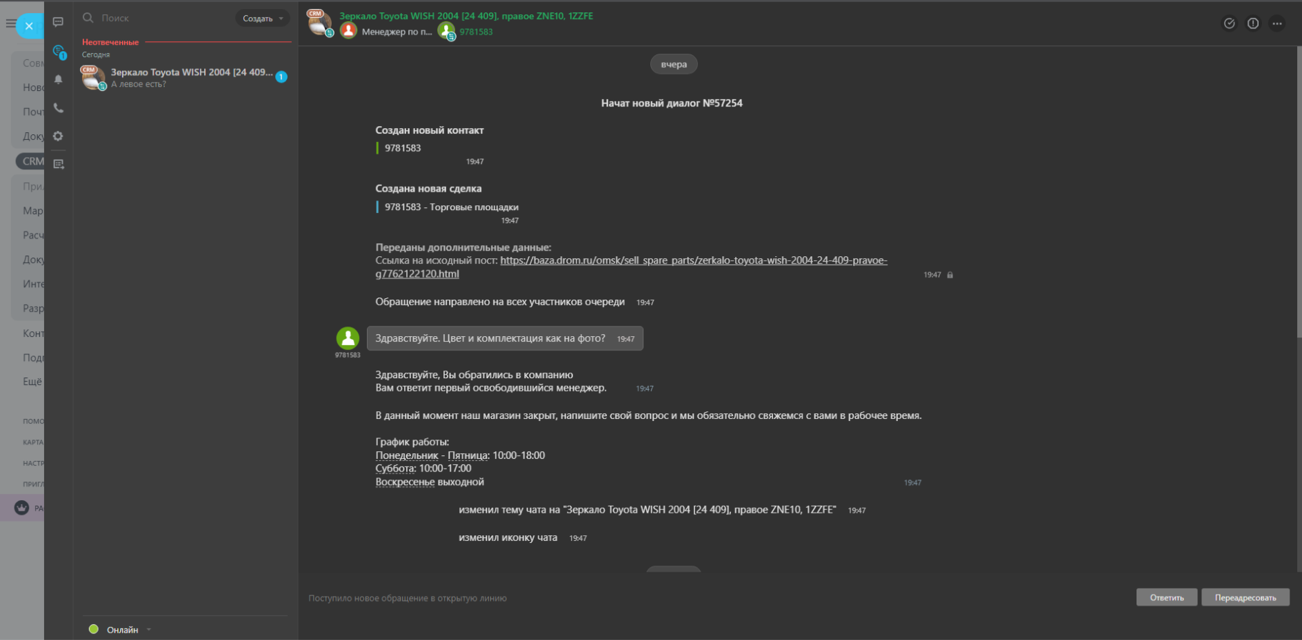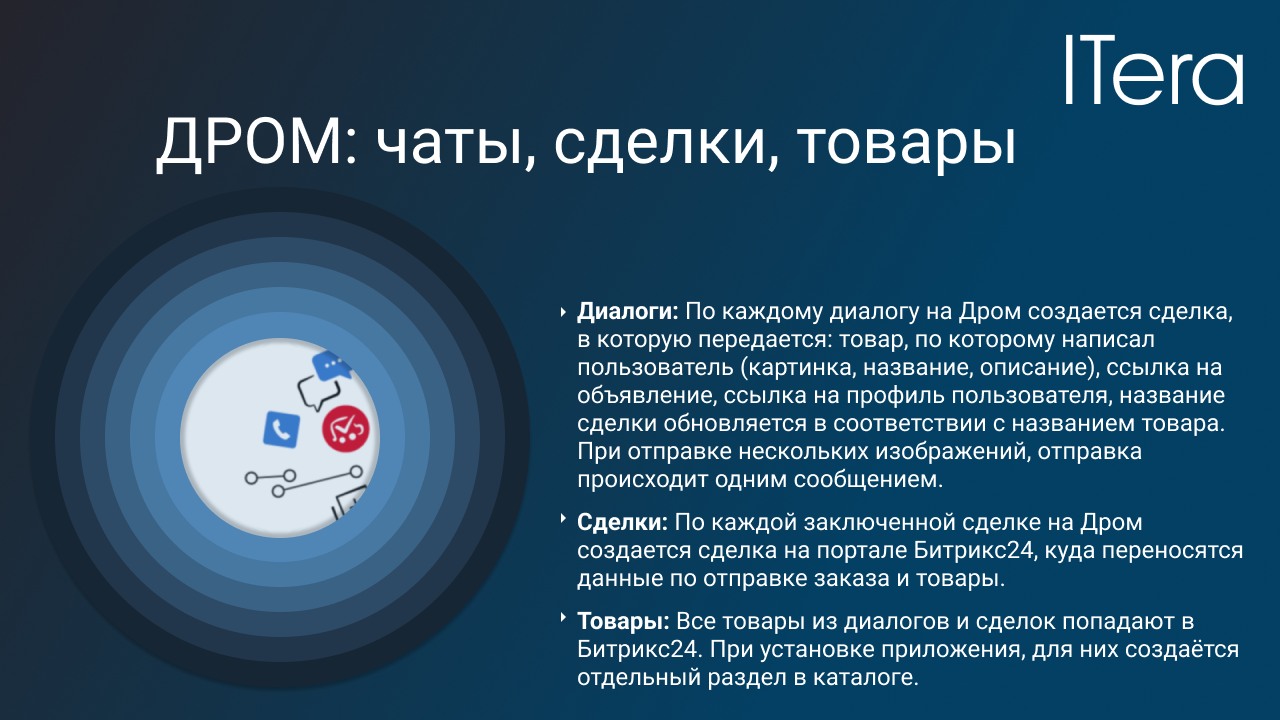 Интеграция диалогов, товаров, объявлений о продаже автомобилей и сделок на сайте Дром с порталом Битрикс24.