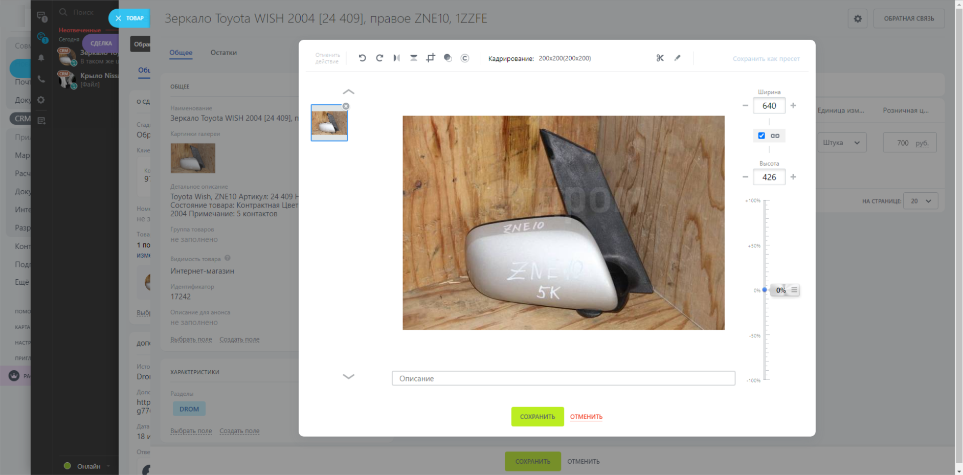 - Диалоги. По каждому диалогу на Дром создается сделка, в которую предается: товар по которому написал пользователь (картинка, название, описание), ссылка на объявление, ссылка на профиль пользователя, название сделки обновляется в соответствии с названием товара. При отправке нескольких изображений, отправка происходит одним сообщением.