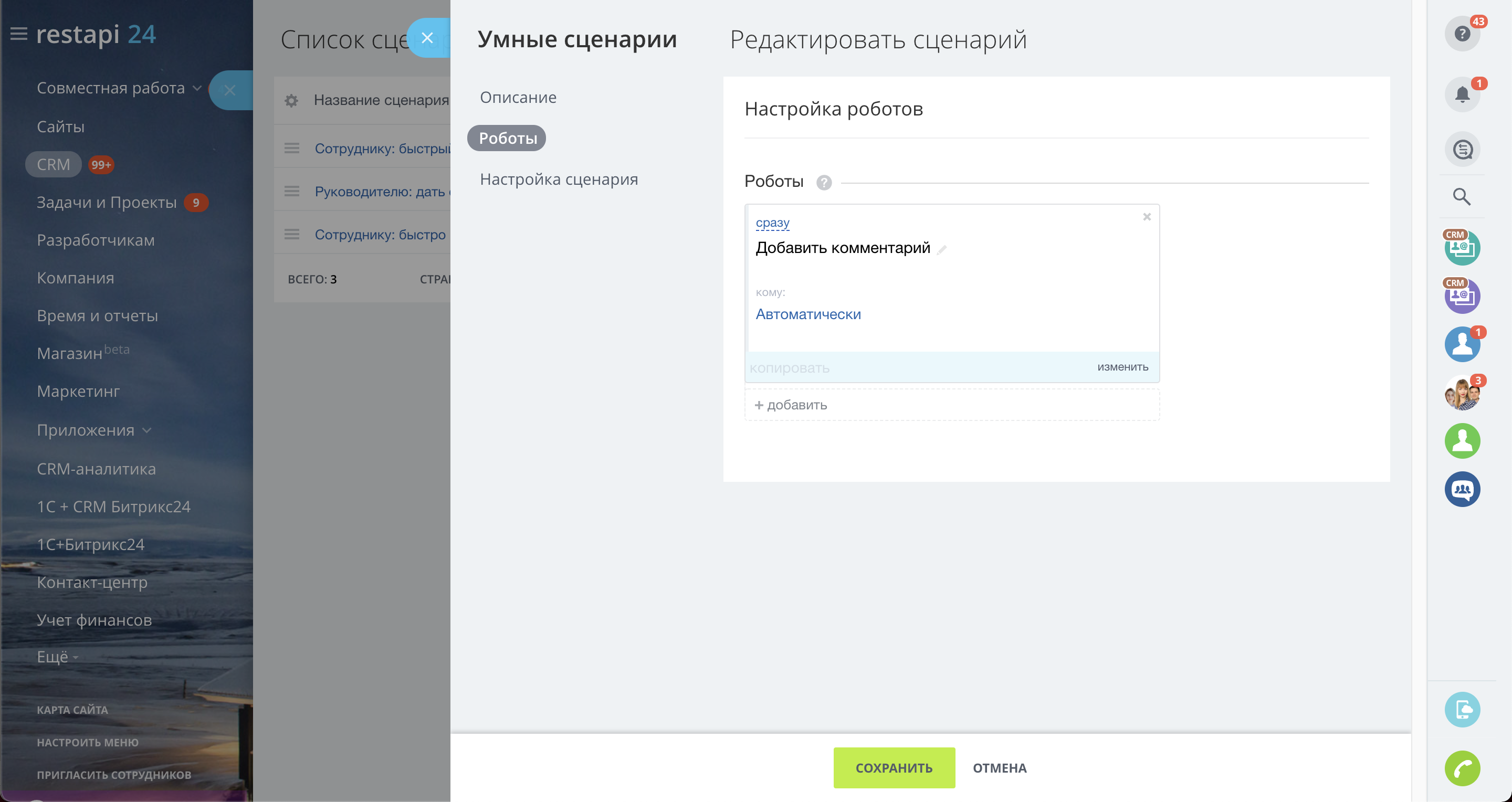 Быстрая отправка SMS группе клиентов, напоминание сотрудникам и лёгкое подключение наблюдателей к нескольким сделкам сразу