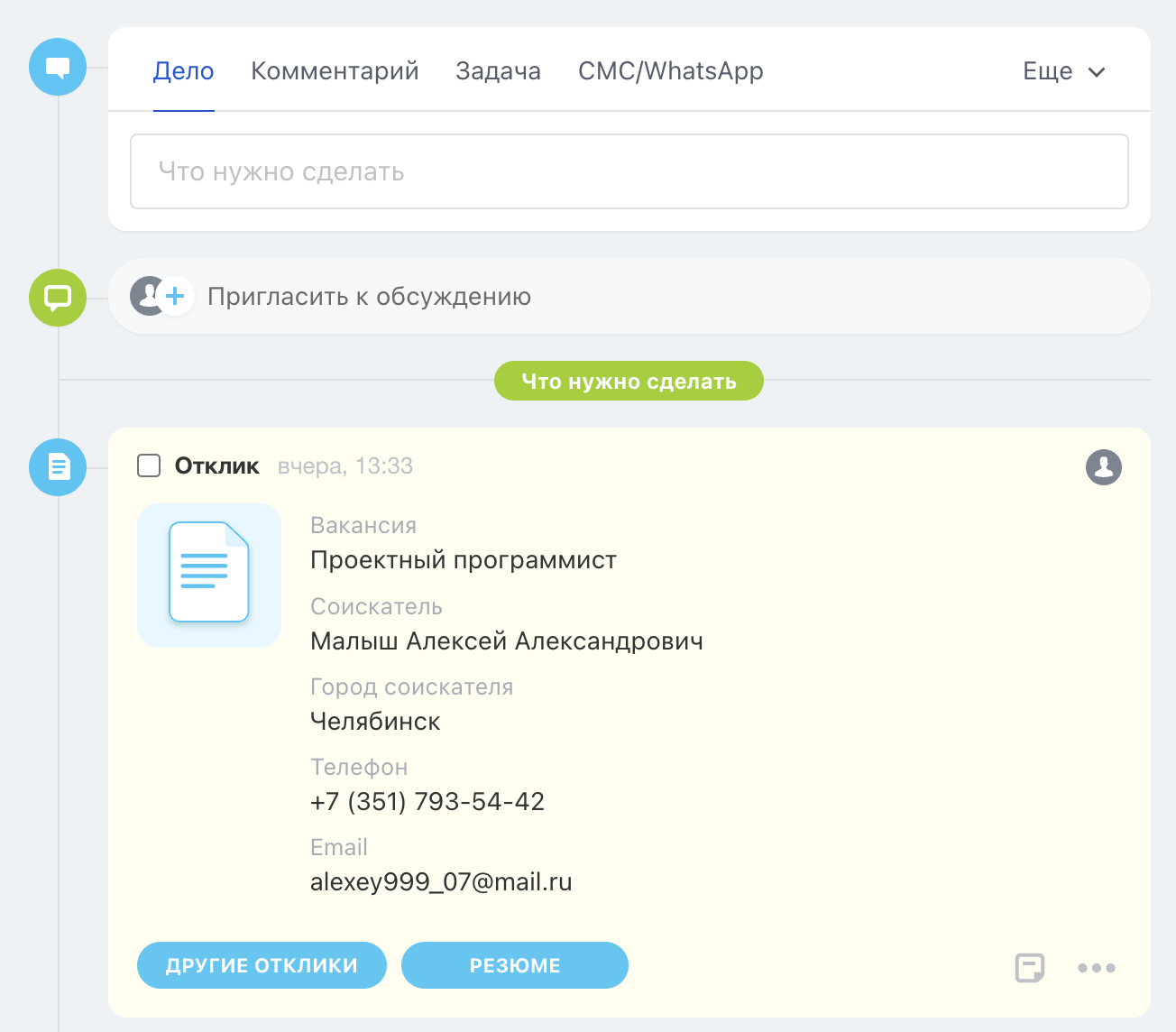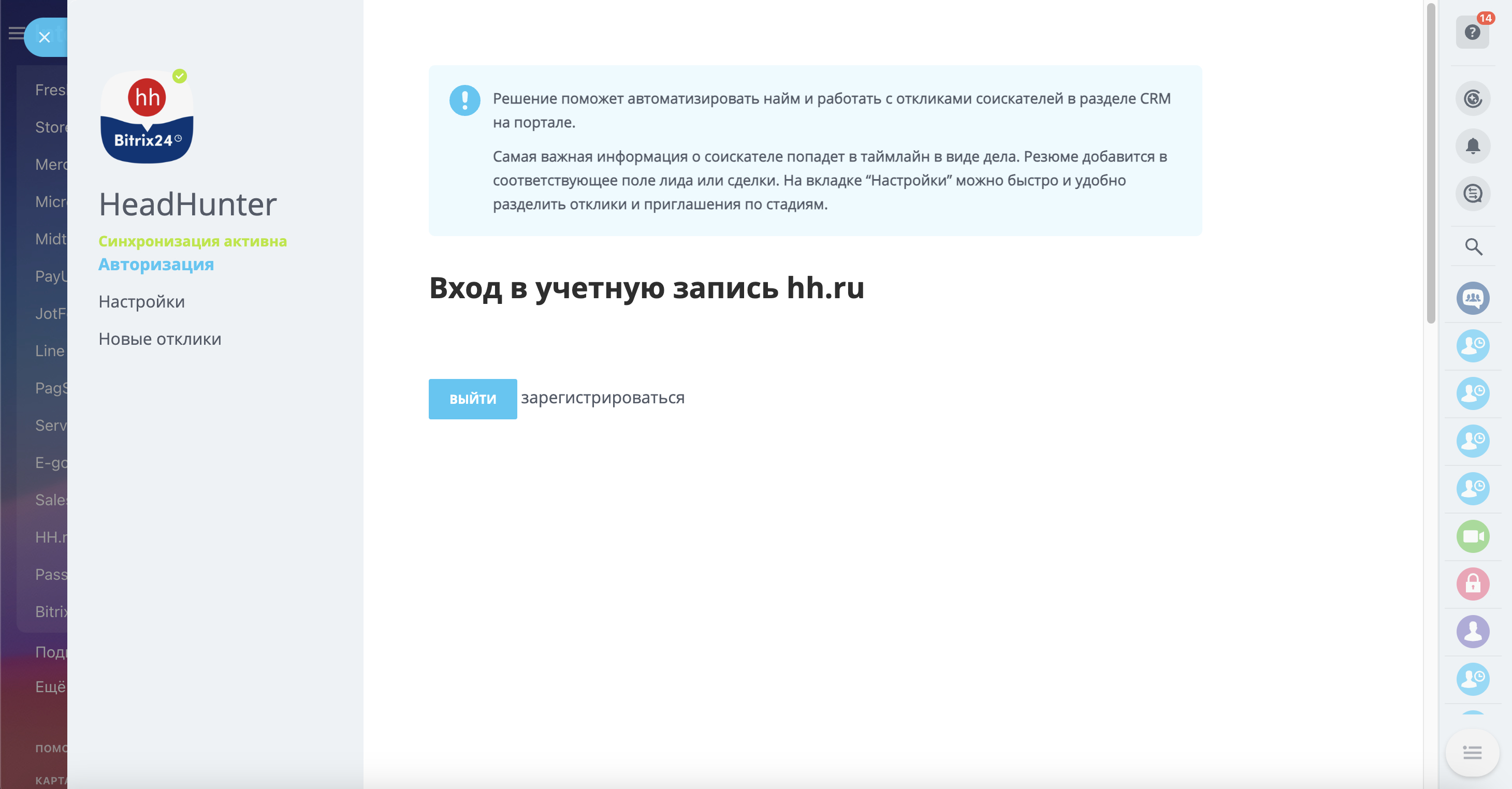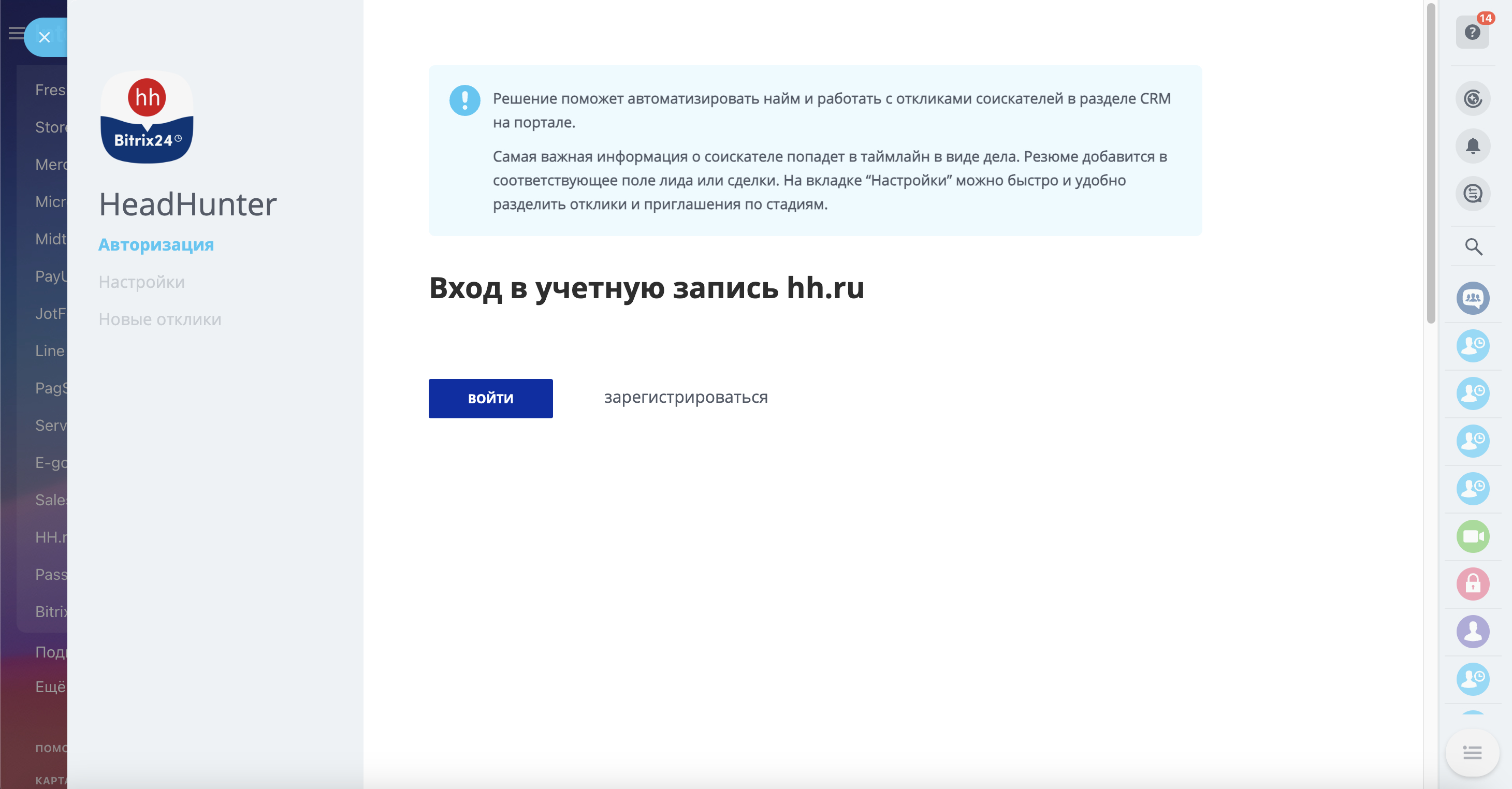 Интеграционное решение для HR-специалистов, позволяющее работать с откликами соискателей в CRM Битрикс24