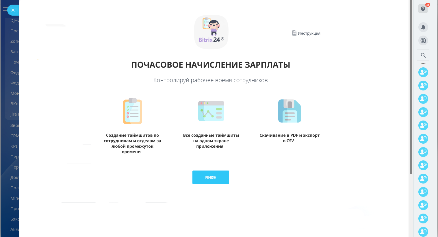 Для работы приложения у сотрудников должно быть установлено десктопное приложение Битрикс24.
