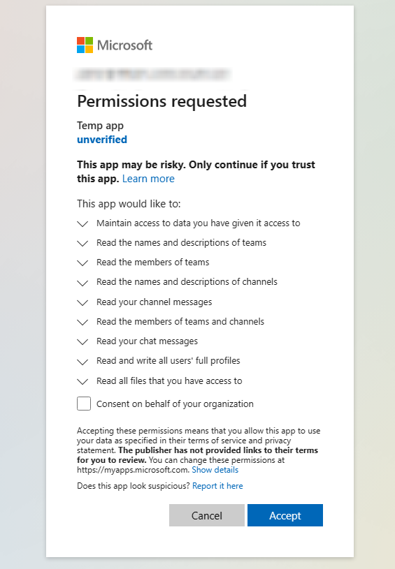 Использовать приложение могут только администраторы портала. Для успешной авторизации необходима рабочая или учебная учетная запись Microsoft.