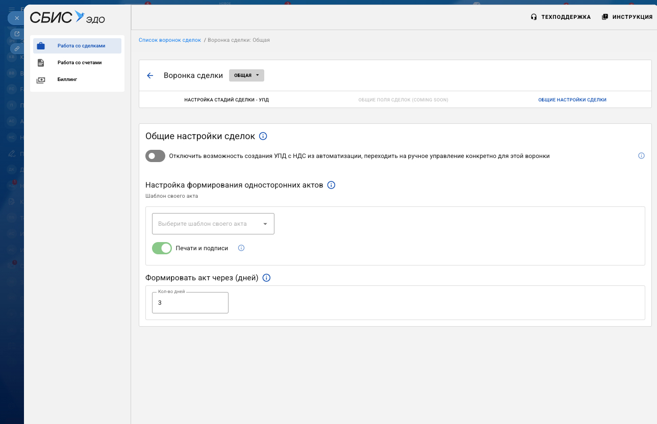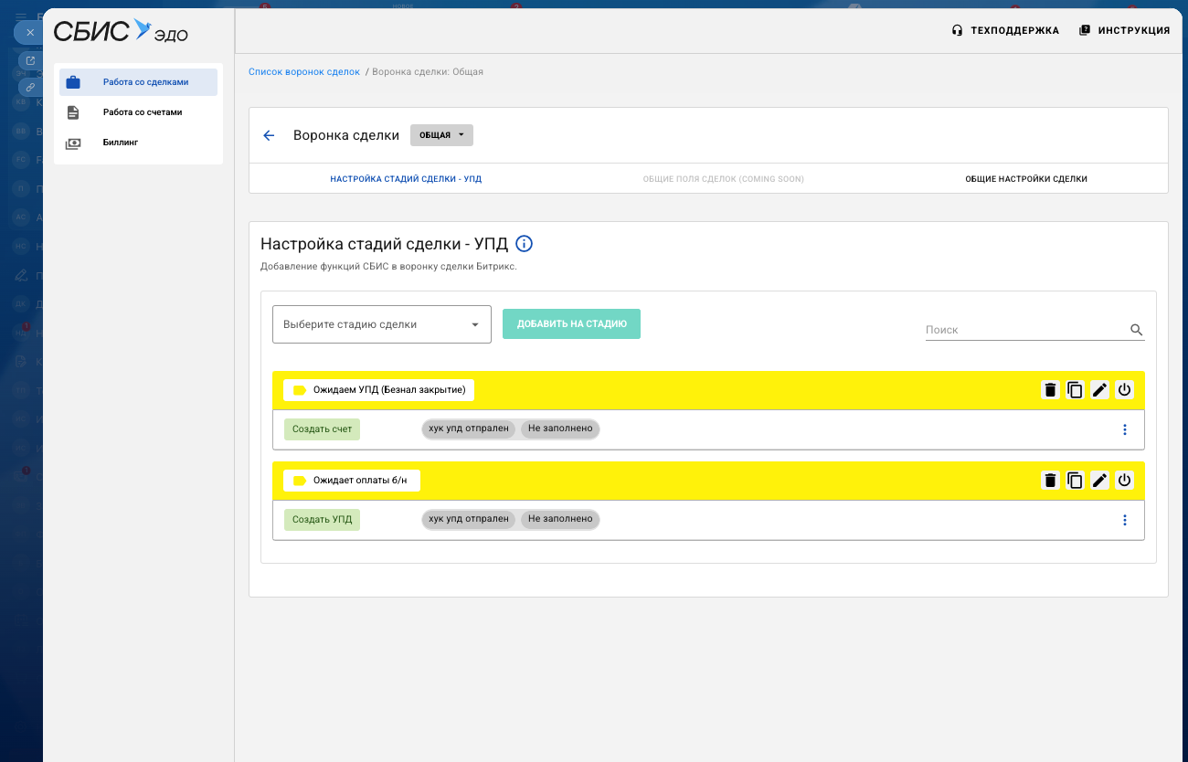 Гибкая настройка процессов: Настройте отправку счета на подписание при переходе сделки на стадию «Согласование договора» или автоматическое создание УПД после перехода на стадию «Оплачено».