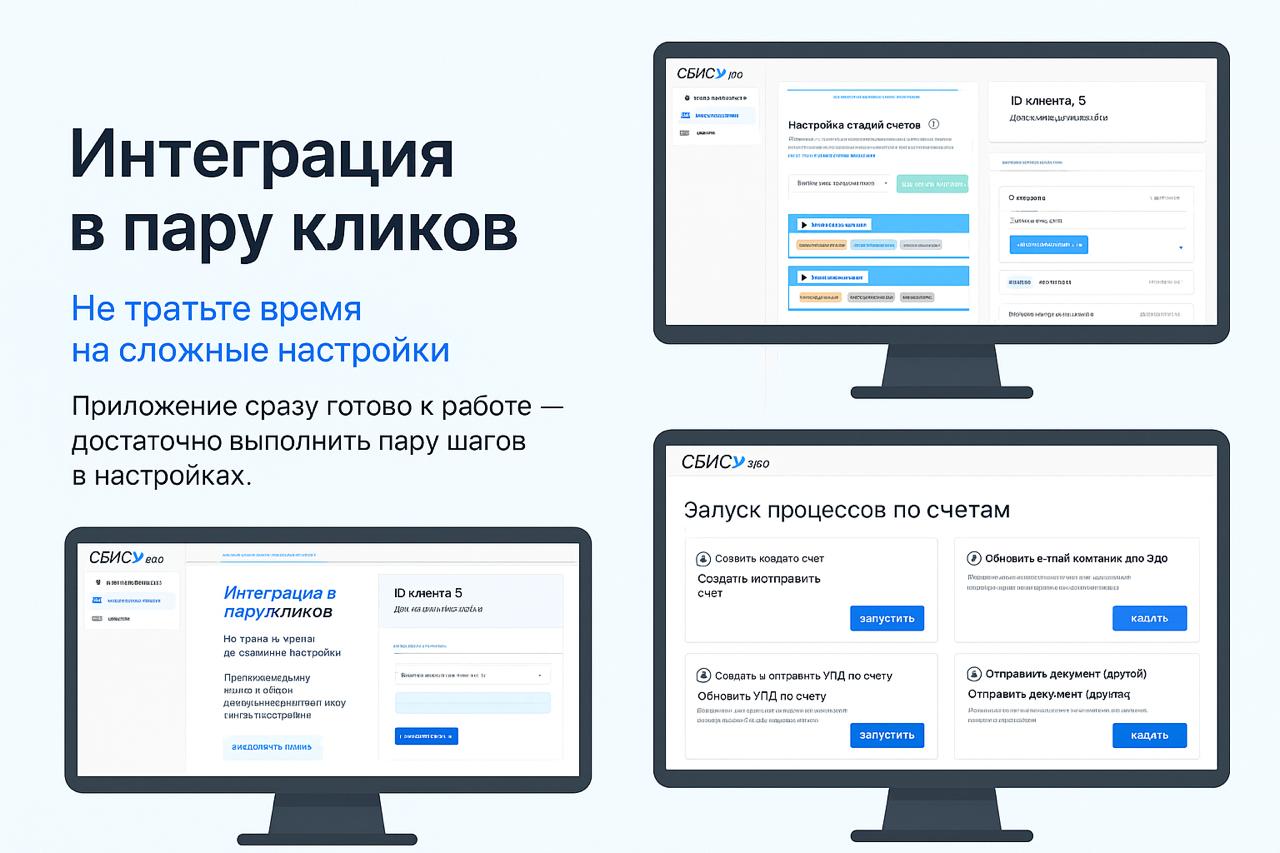 Подключение внешних систем: Интеграция осуществляется напрямую между вашим Битрикс24 и сервисом СБИС ЭДО через официальное API.