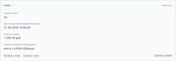 - Замер - проведение замера у клиента;
