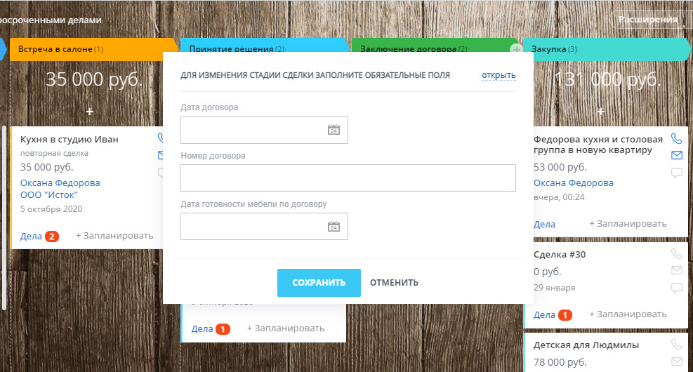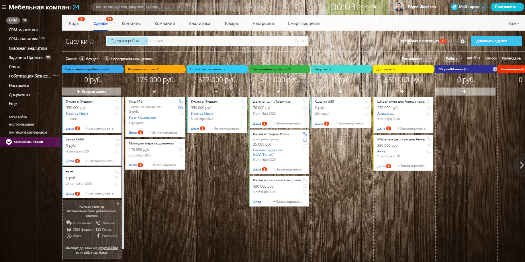 - Повысить внутреннюю эффективность компании за счет налаженных процессов и контроля над каждой сделкой