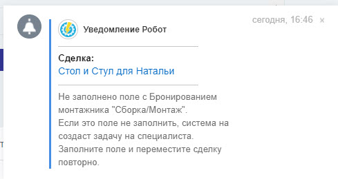Добавлены роботы для уведомлений, контроля заполнения полей, напоминай и пр.