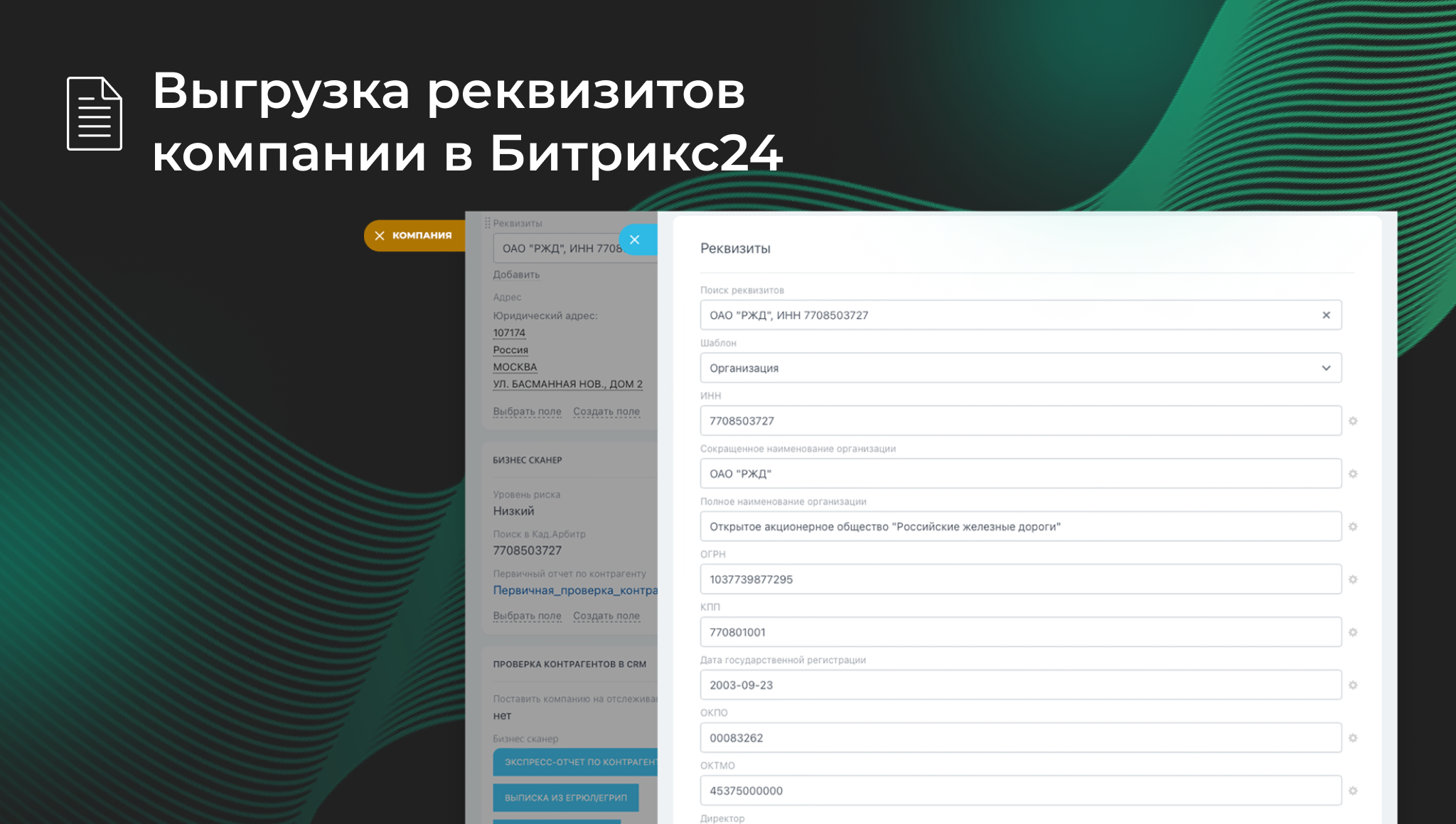 • Выгрузка реквизитов компании по ИНН в Битрикс24.