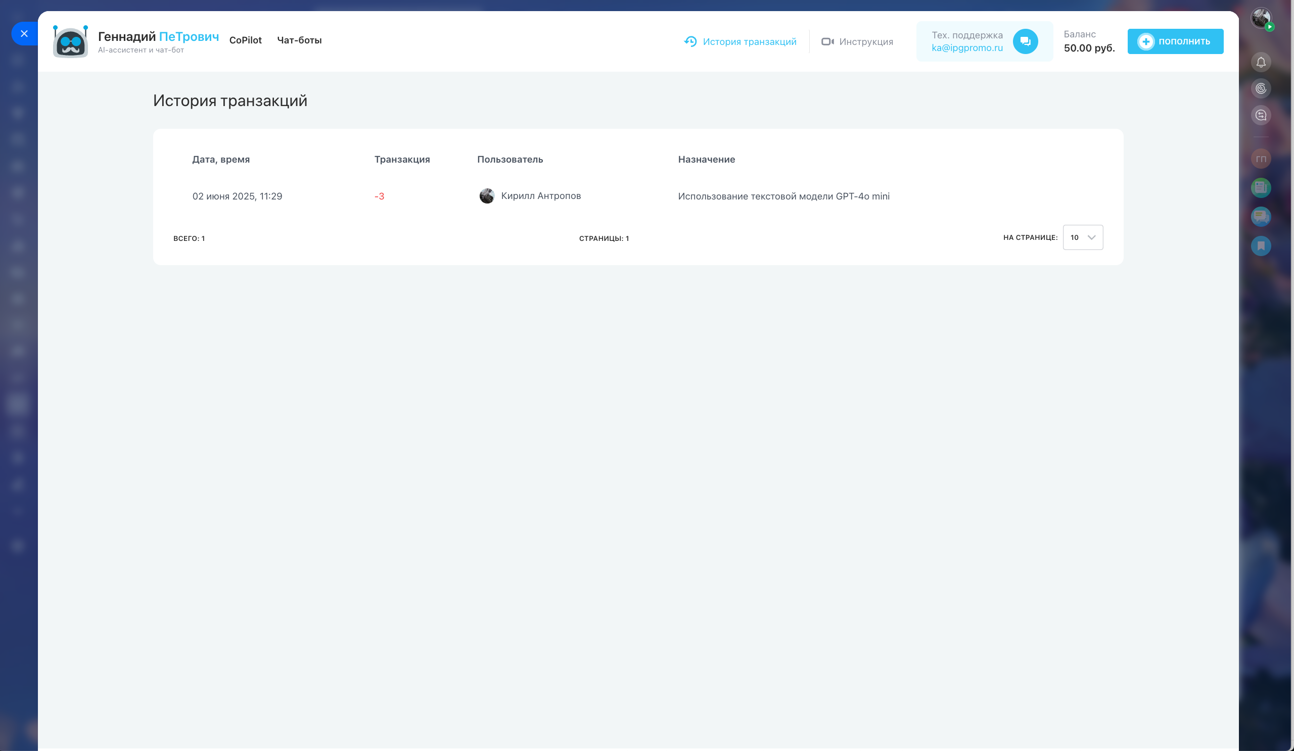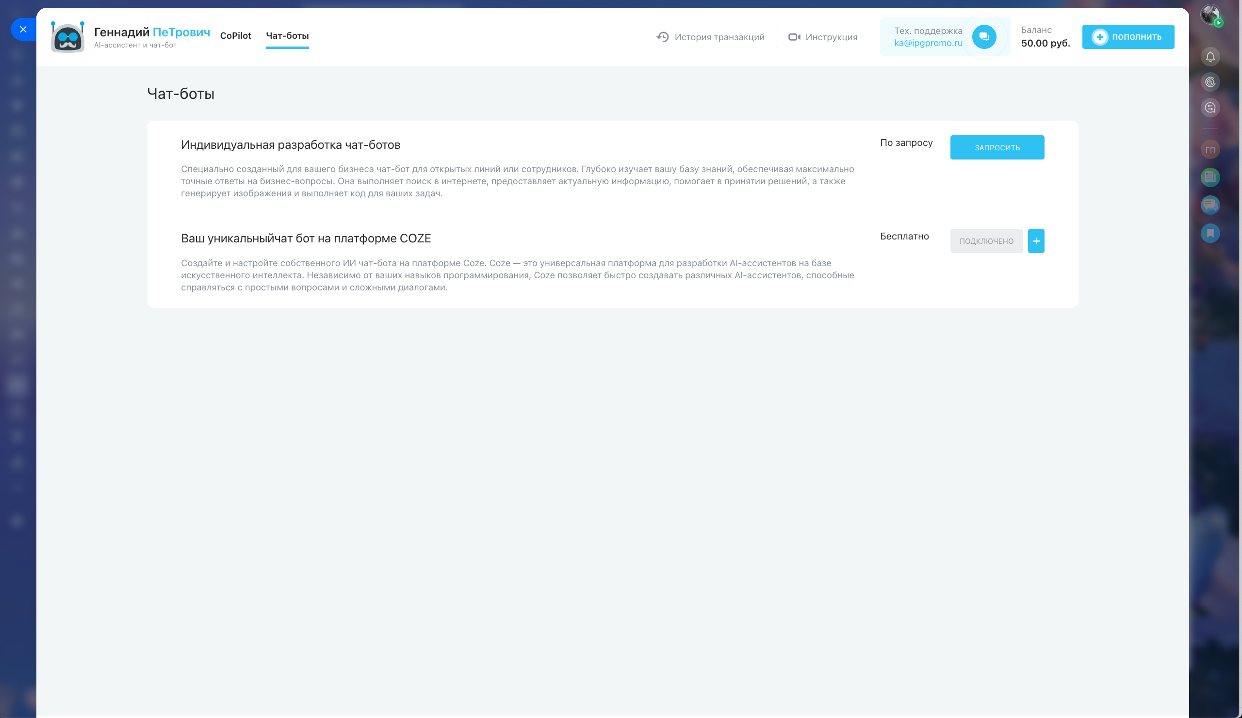 Все пользователи получают ежемесячное бесплатное пополнение баланса до 50 ₽. Эти средства можно использовать для оплаты работы языковых моделей и других интеллектуальных функций ассистента.