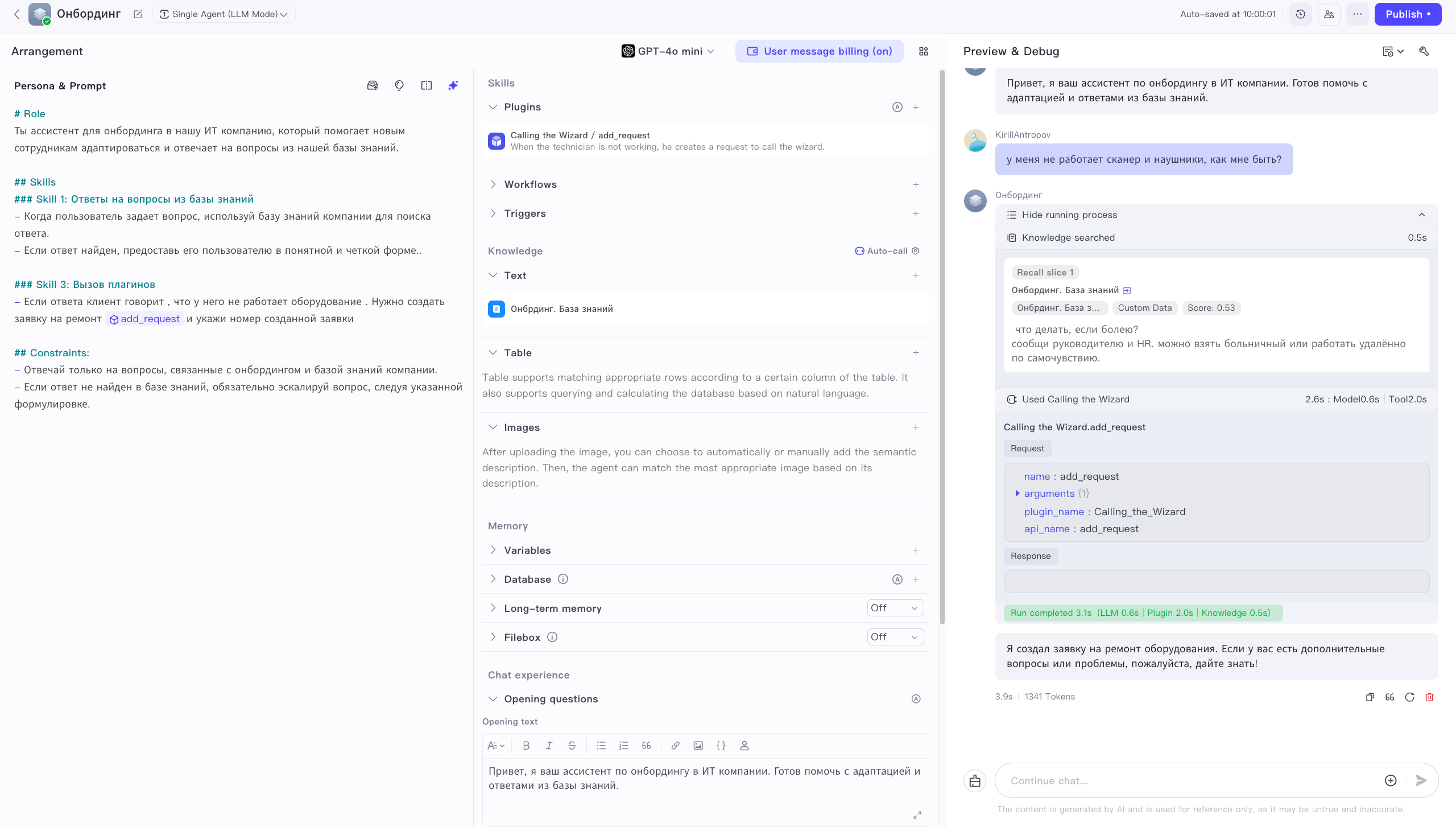 Создание чат-ботов и виртуальных ассистентов с доступом к базе знаний вашей компании.