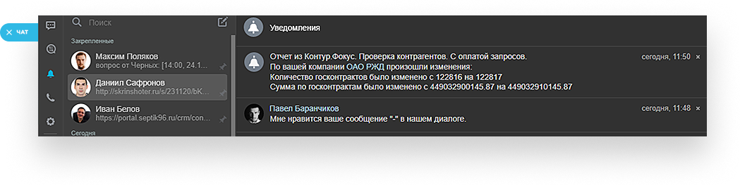 - Мониторинг изменения любых показателей компании и ежедневные уведомления о произошедших изменениях.