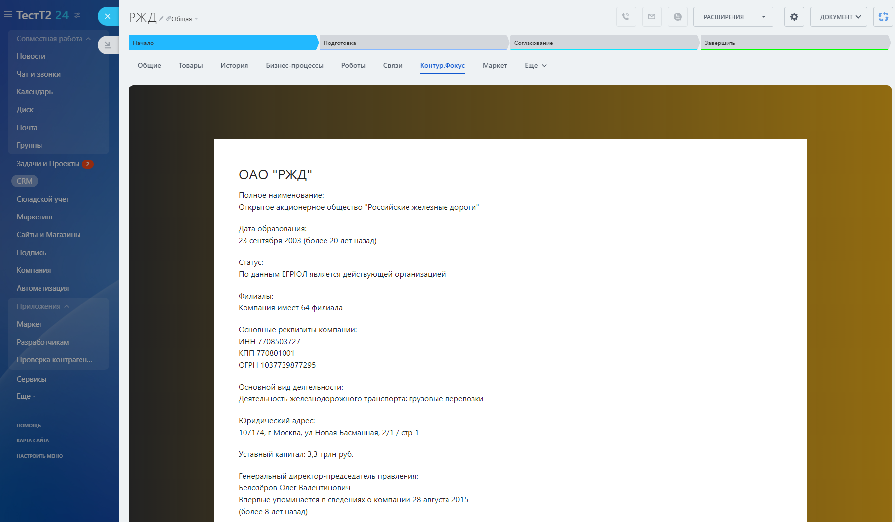 - Выгрузка любых полей из отчета Контур Фокус в карточку компании.