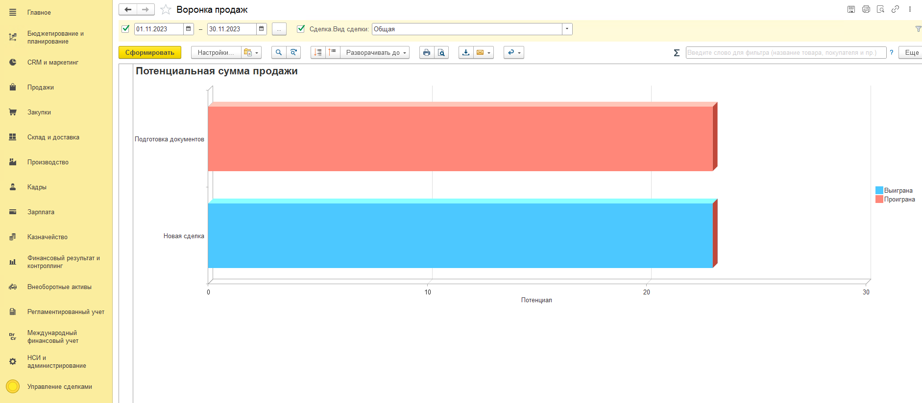 В отчете показаны диаграммы с информацией о количестве и потенциальной суммы продажи: