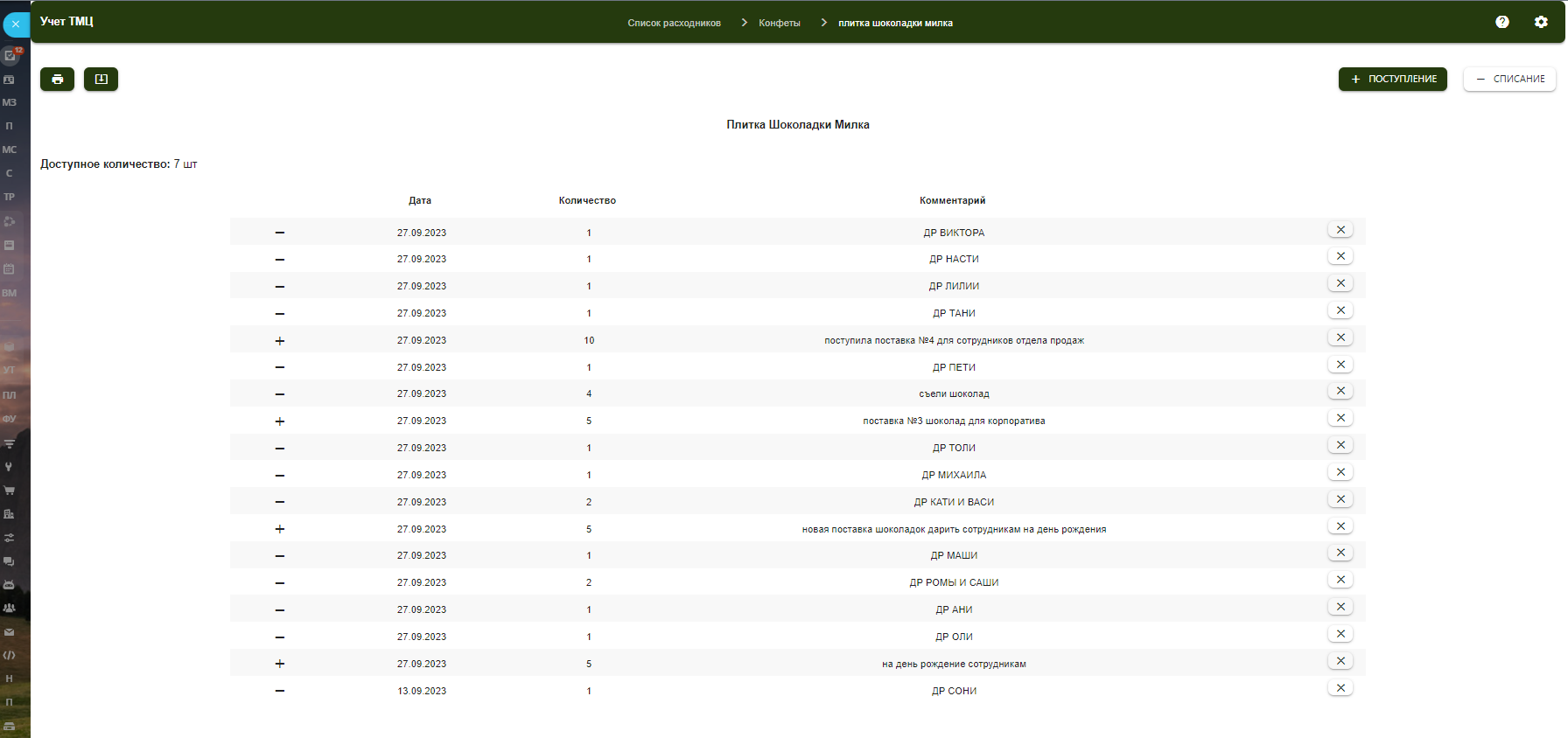 2. Фиксация "что кому выдано" - эта функция нами обсуждалась, но всё-таки она не планируется в рамках текущего приложения. Можем сделать её у вас в портале индивидуально, в рамках платных доработок.