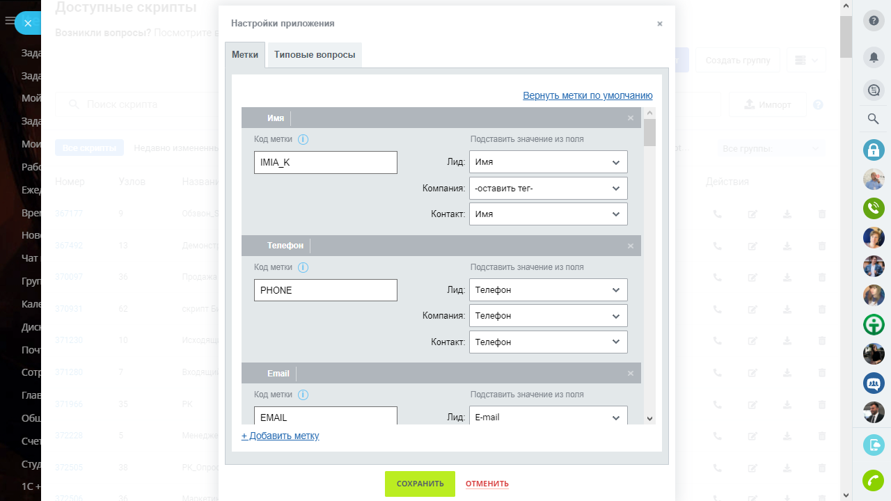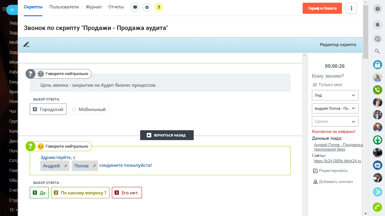Звонки по скриптам в Битрикс24. В карточке звонка, лидов, сделок, контактов. Работа с данными из карточек CRM сущностей прямо в скрипте звонка.