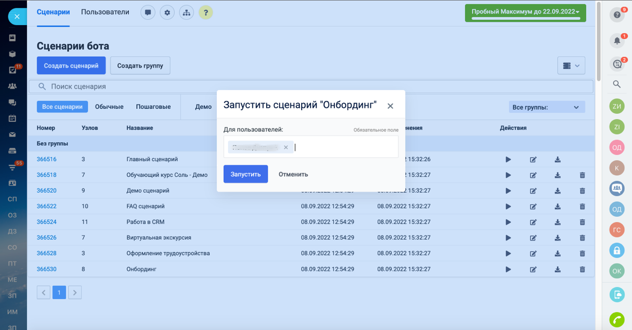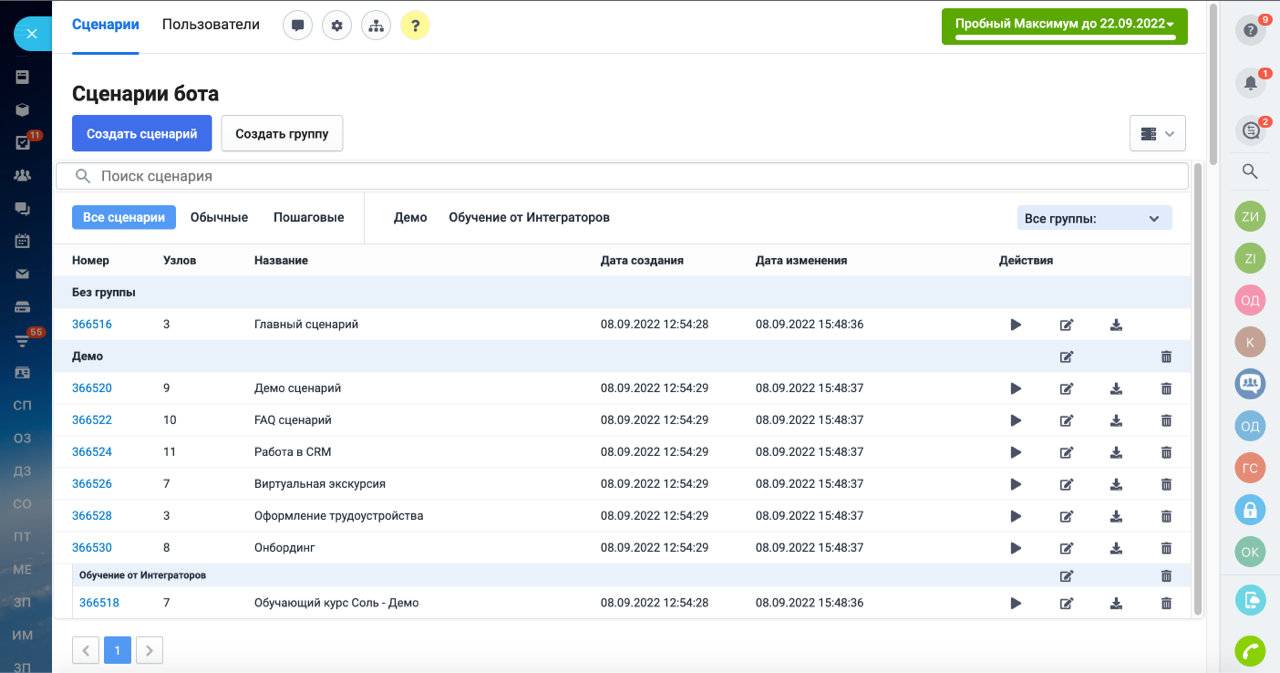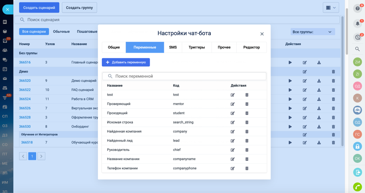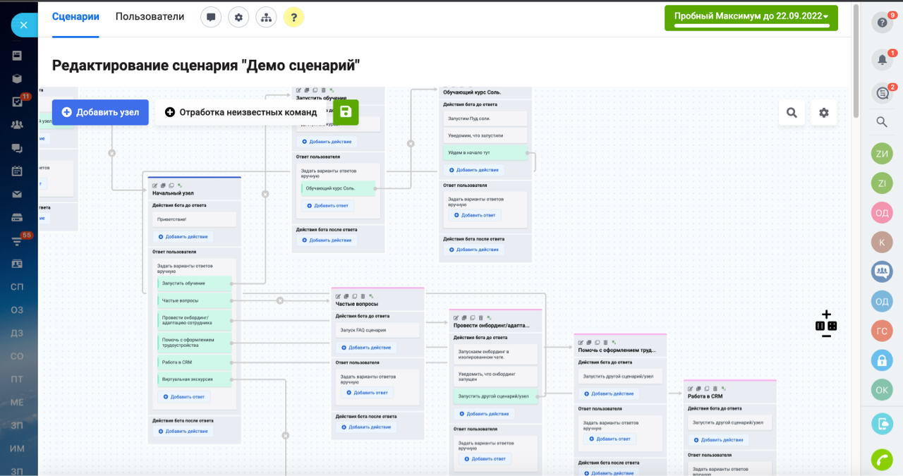 - Запускать сценарии (обучение, тестирование и др) в отдельных изолированных друг от друга чатах;