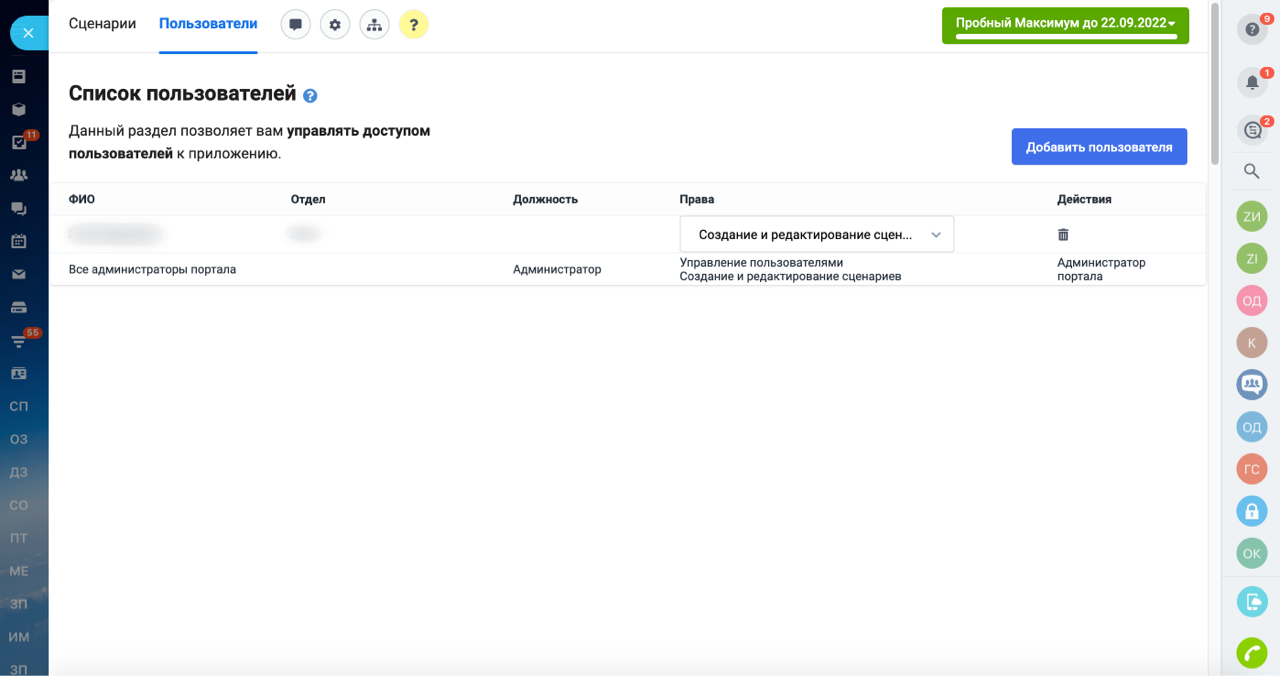 * Количество пользователей может быть ограничено вашим тарифом Битрикс24. Внутри приложения ограничений на количество пользователей нет.