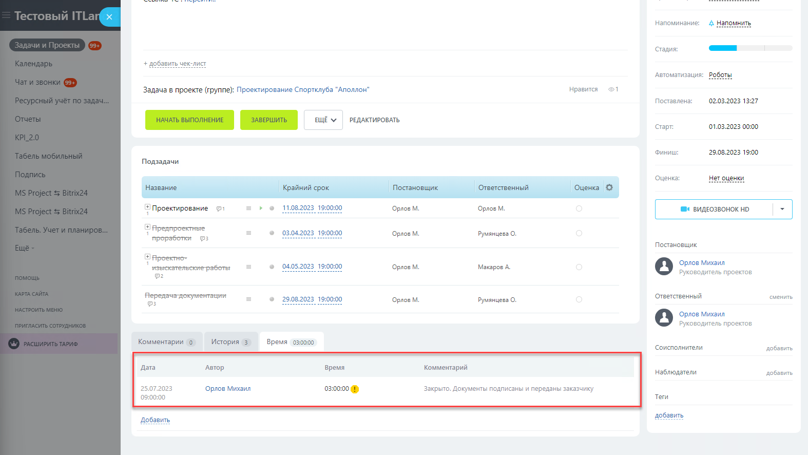 • В Битрикс24 вам необходим строгий учет очереди проектов и задач, а также временных затрат по всем задачам;