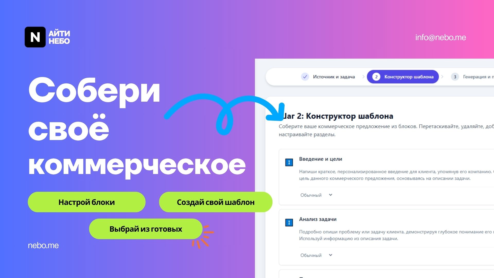 Гибкие блоки: Соберите структуру вашего будущего КП как конструктор. Используйте готовые семантические блоки («Введение», «Анализ задачи», «Предлагаемое решение» и т.д.) или создавайте свои.