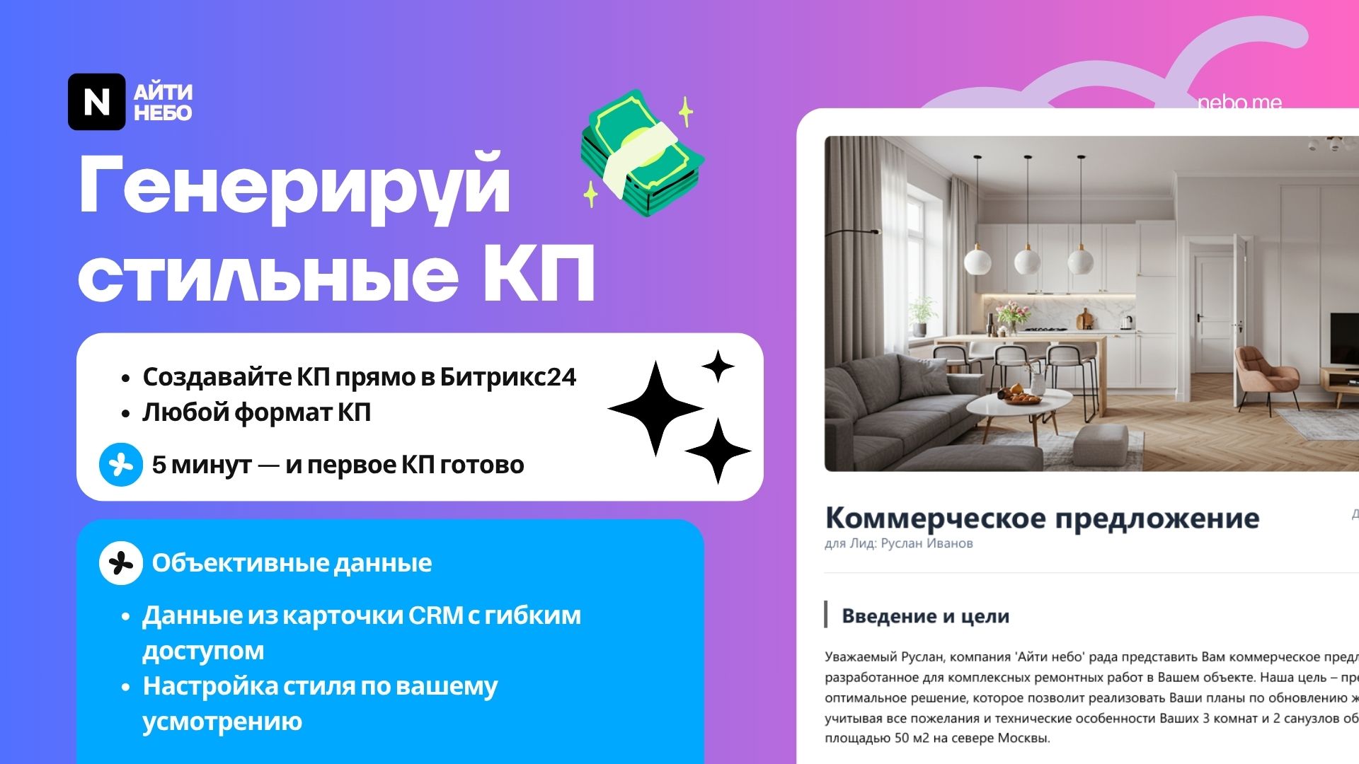 AI Коммерческое24: Ваш новый AI-ассистент по продажам! Создавайте неотразимые и стильные коммерческие предложения прямо в Битрикс24 всего за 5 минут.